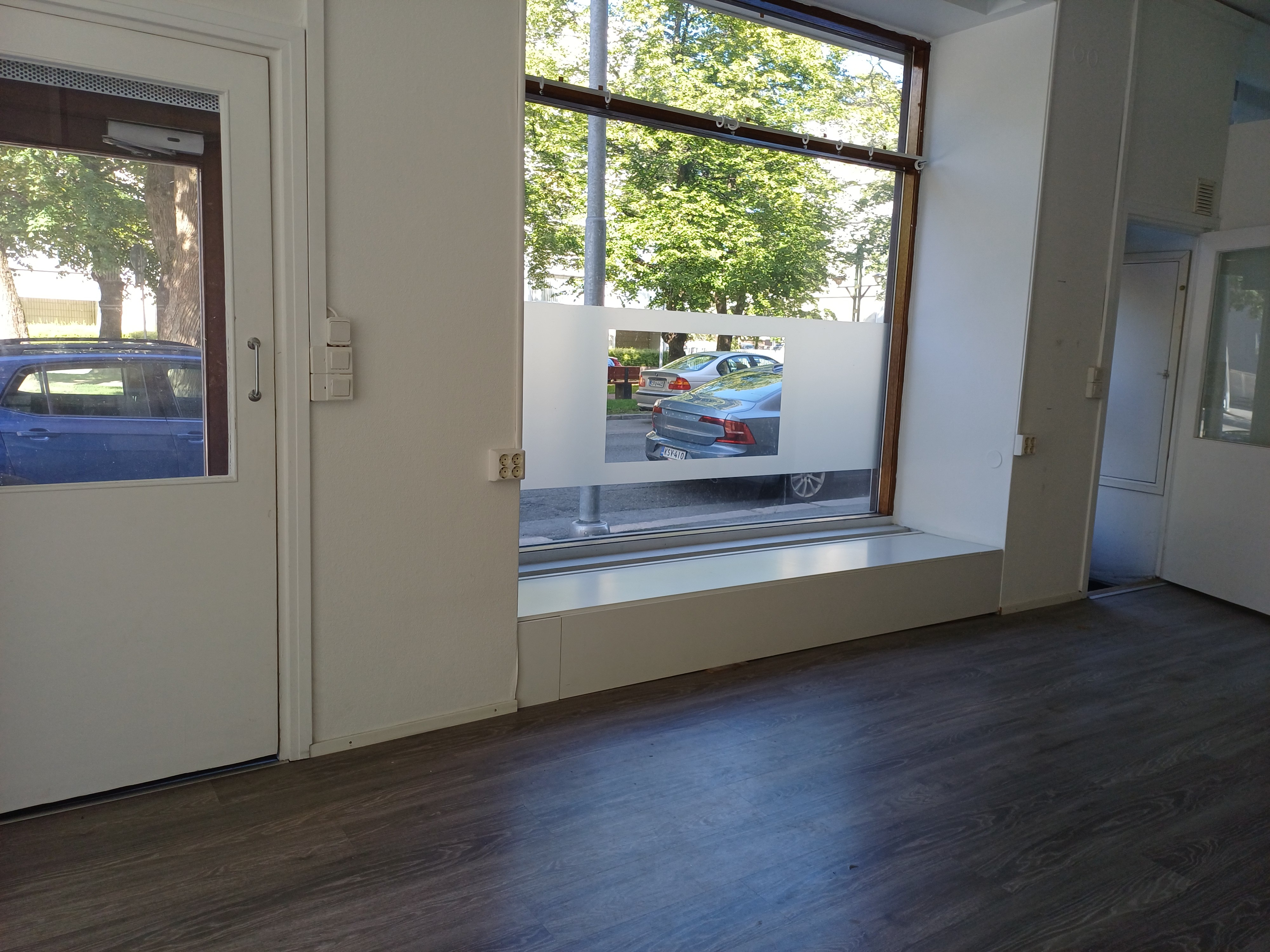 Liikehuoneisto sijoittuu Länsipuiston ja Katariinankadun kulmaan, tilaan on kaksi sisäänkäyntiä Länsipuiston puolelta.