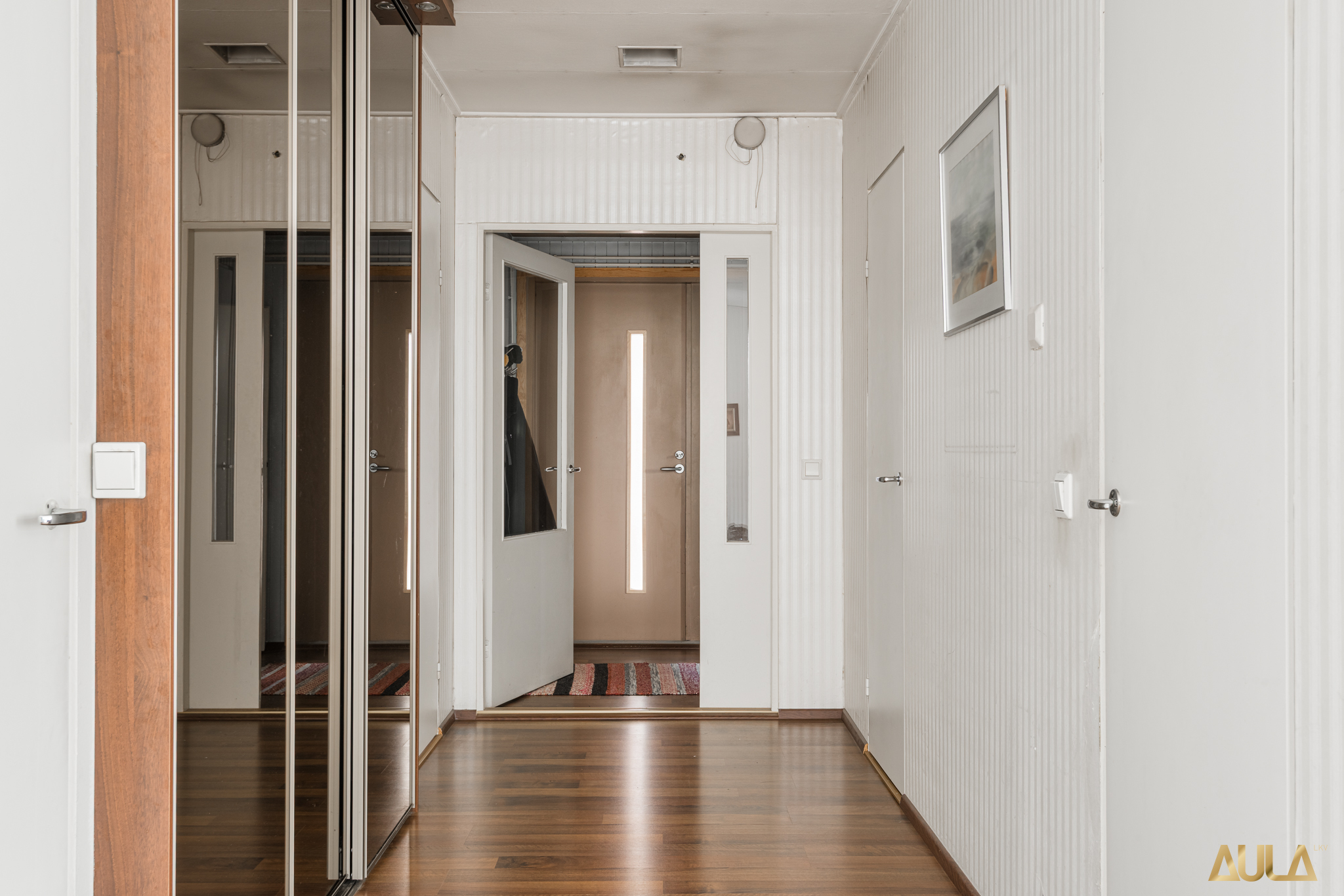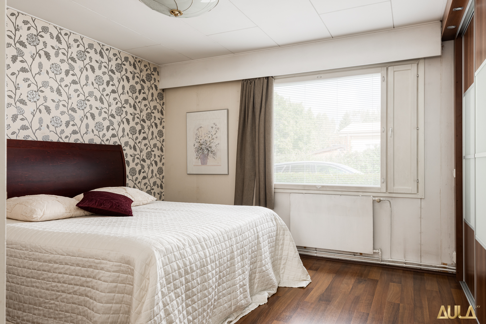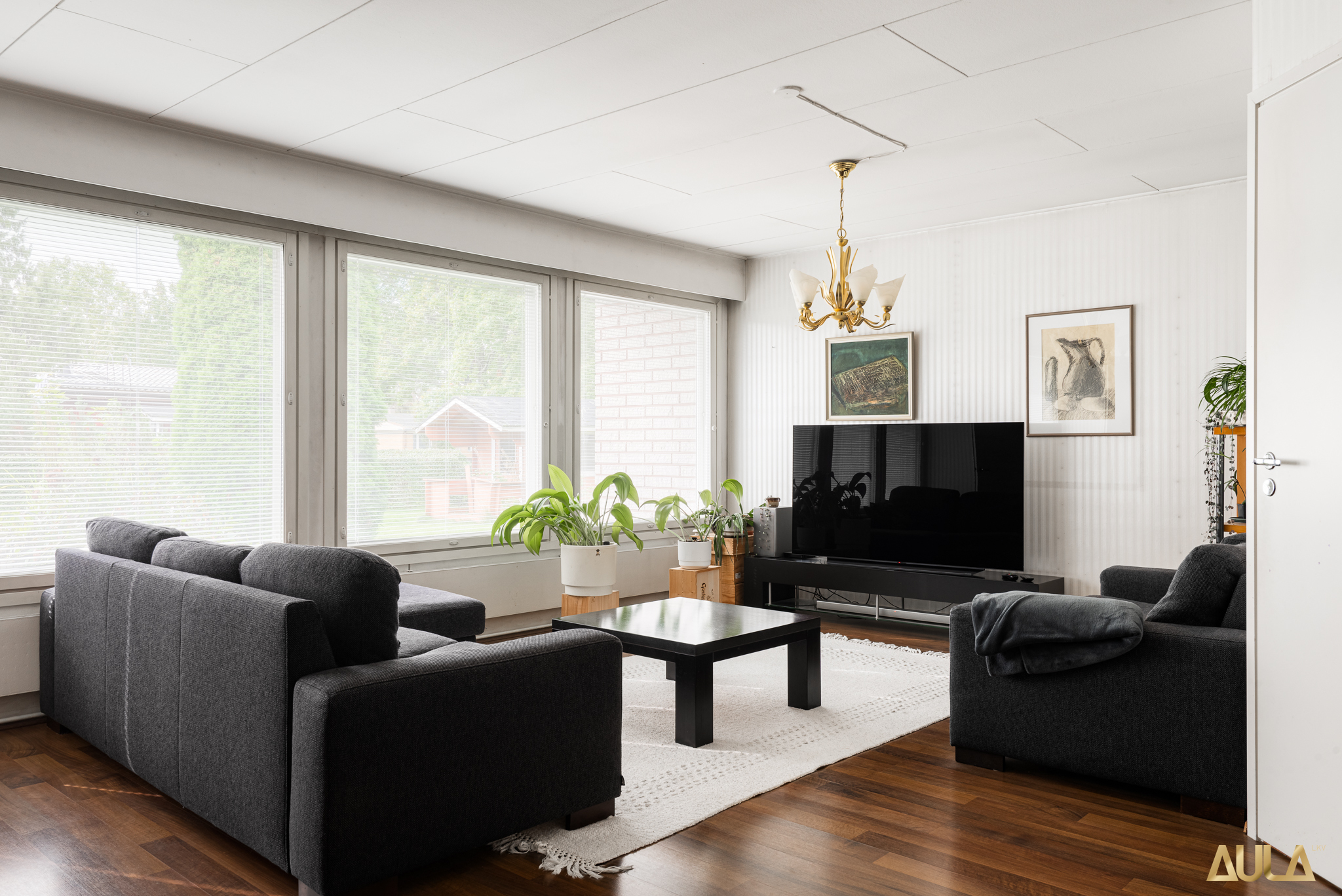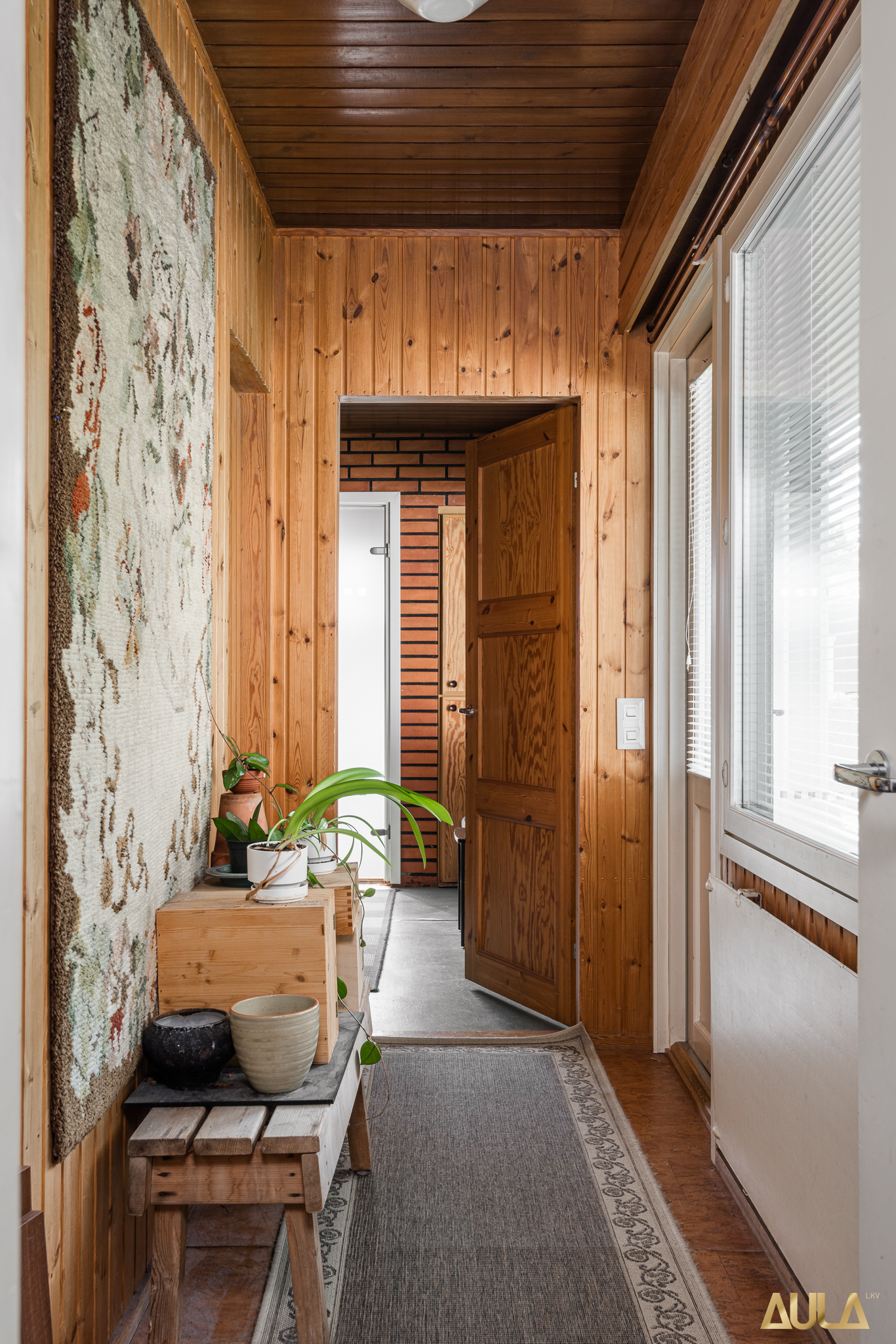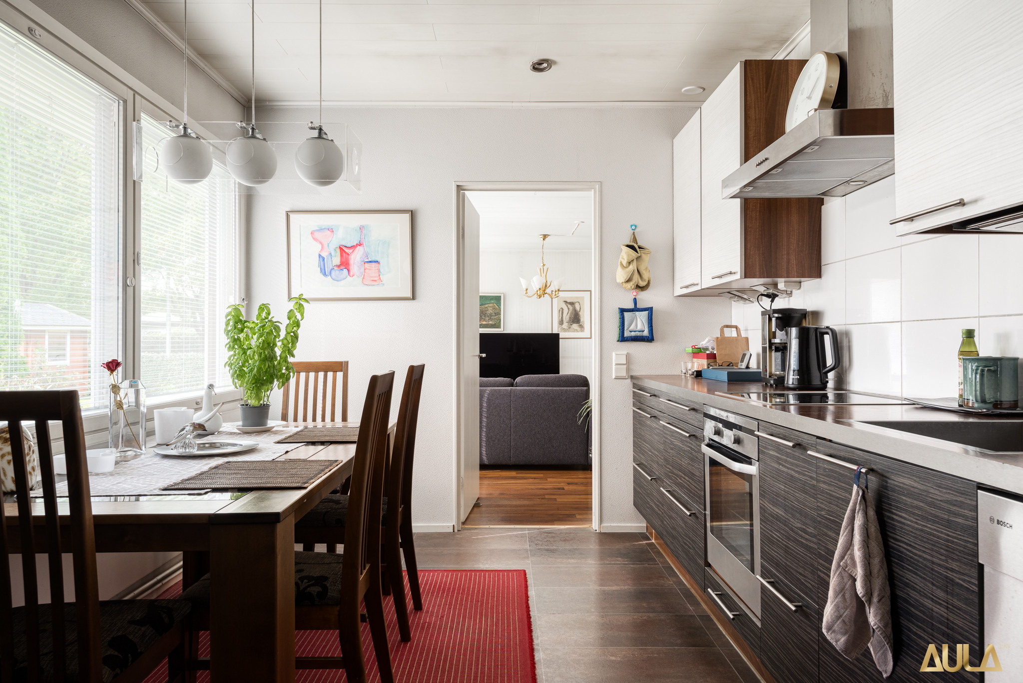 Talossa on tilava olohuone, josta näkee omalle pihalle. Kolme makuuhuonetta tarjoavat tilaa isommallekin perheelle. Olohuoneeseen on myös rakennettu työtila, mitä on myös käytetty makuuhuoneena. Mikäli olet viinien ystävä niin 2011 uusitusta keittiöstä löydät oman viinikaapin, josta voit ottaa pullon lemppari viiniäsi ja tarjoilla hyvän ruuan ohella.