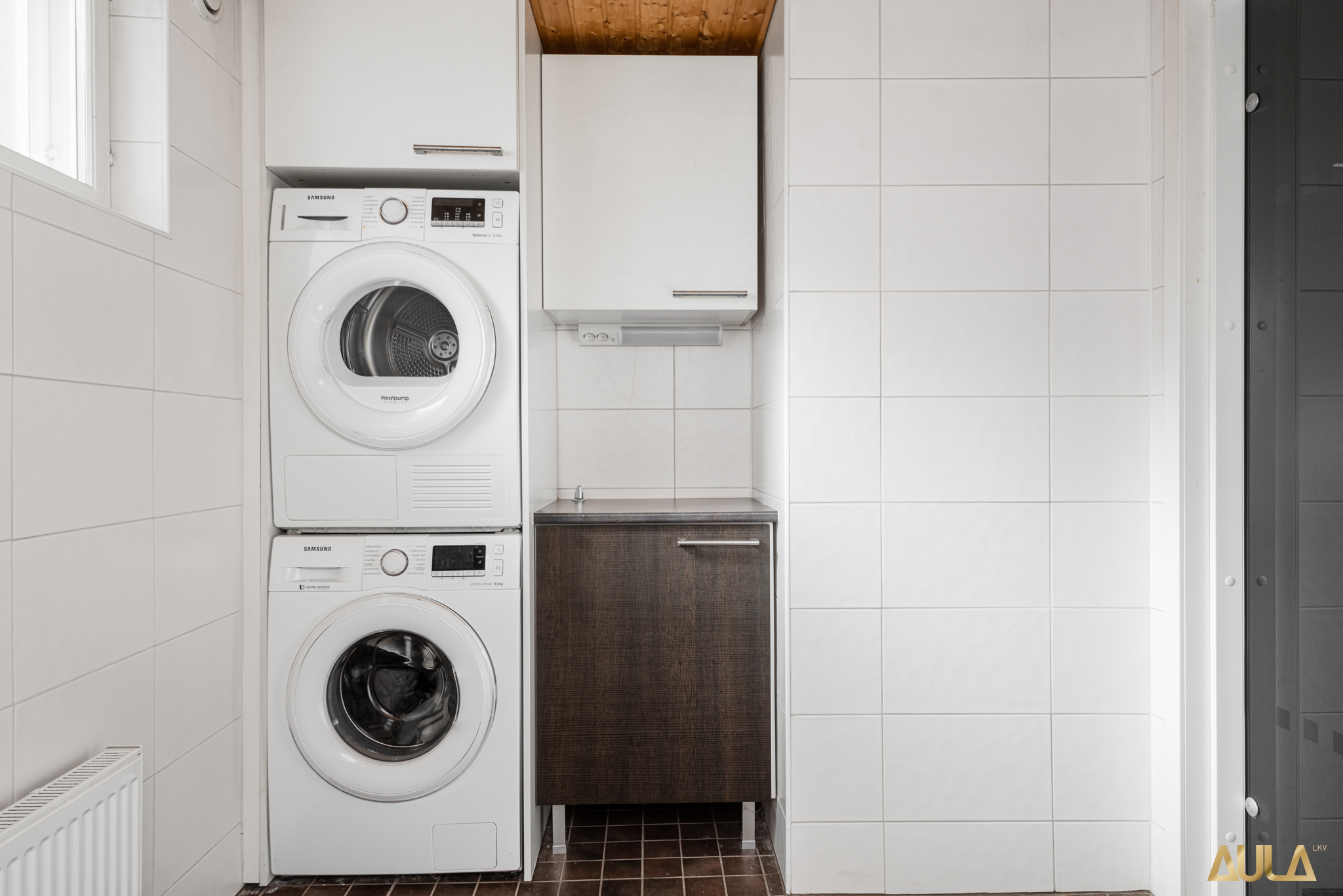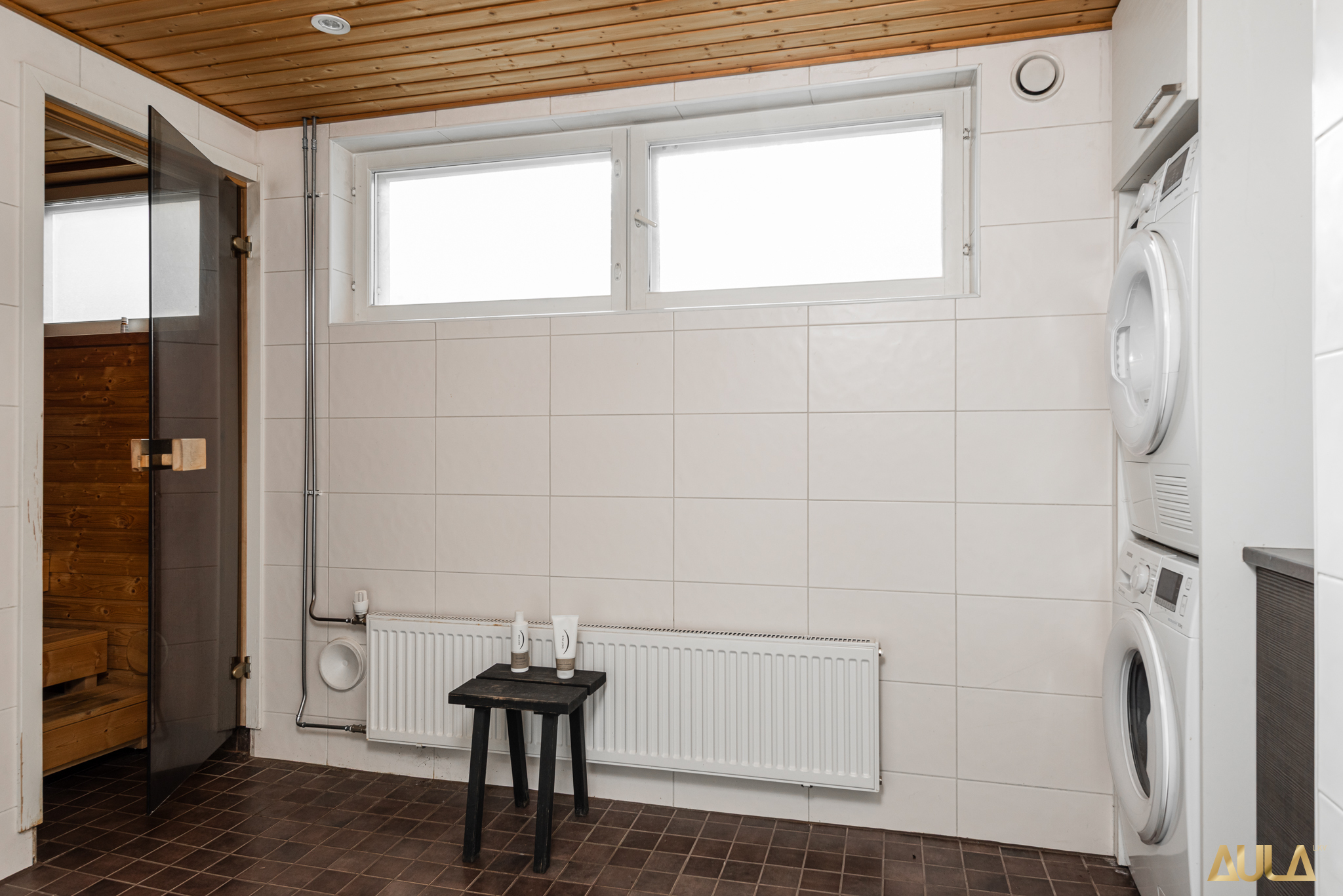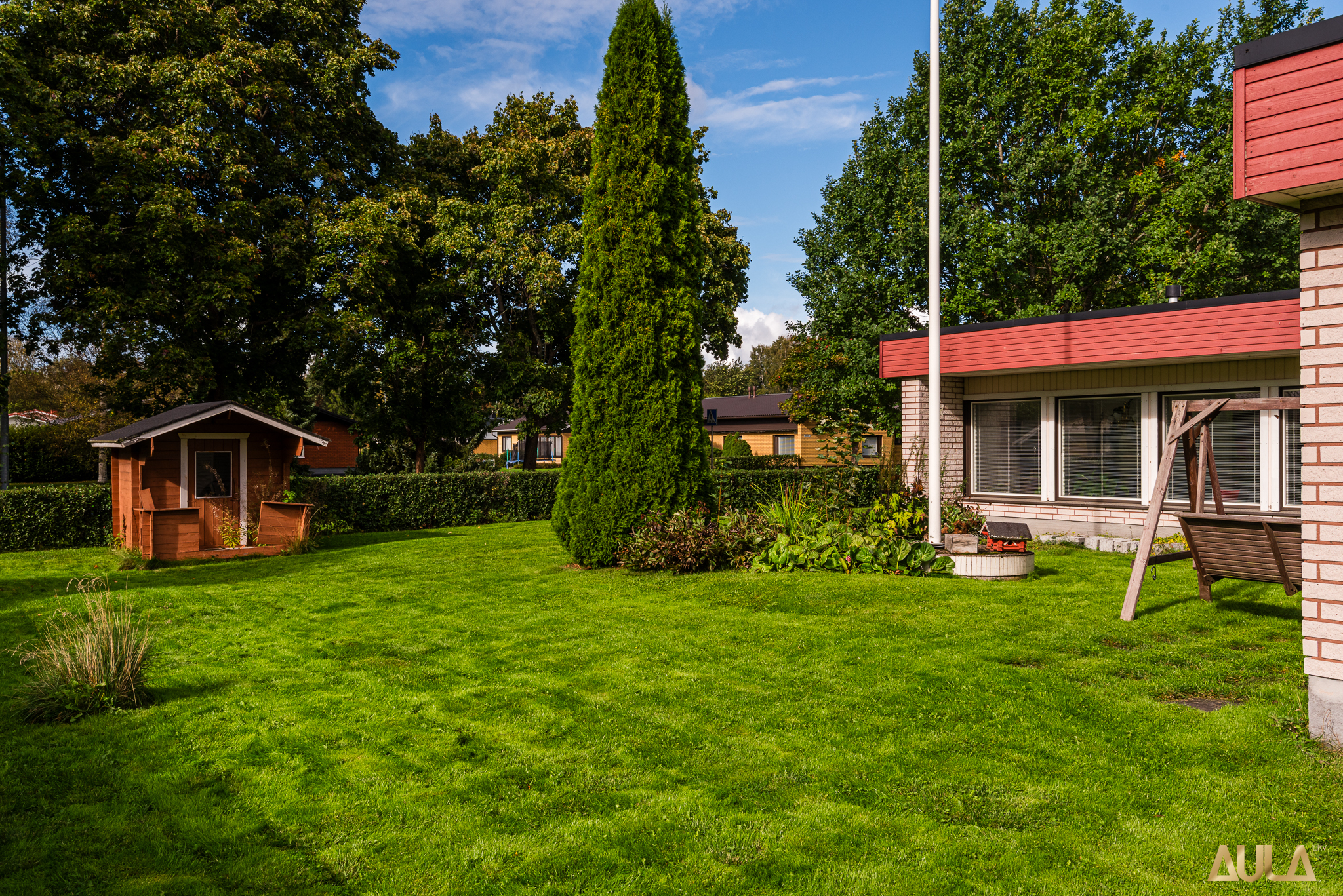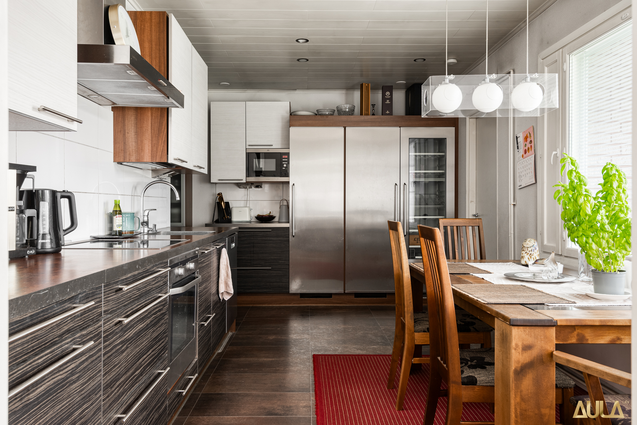 Talossa on tilava olohuone, josta näkee omalle pihalle. Kolme makuuhuonetta tarjoavat tilaa isommallekin perheelle. Olohuoneeseen on myös rakennettu työtila, mitä on myös käytetty makuuhuoneena. Mikäli olet viinien ystävä niin 2011 uusitusta keittiöstä löydät oman viinikaapin, josta voit ottaa pullon lemppari viiniäsi ja tarjoilla hyvän ruuan ohella.