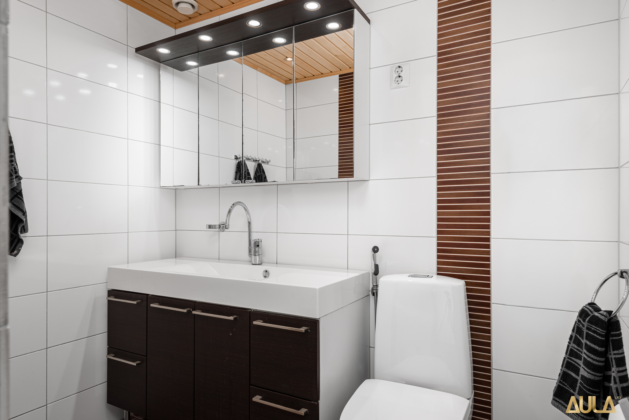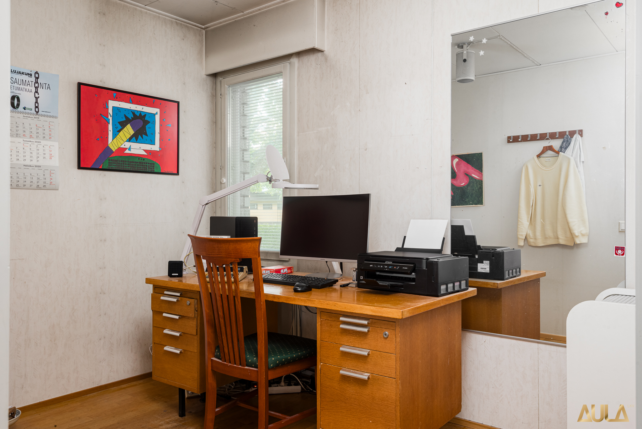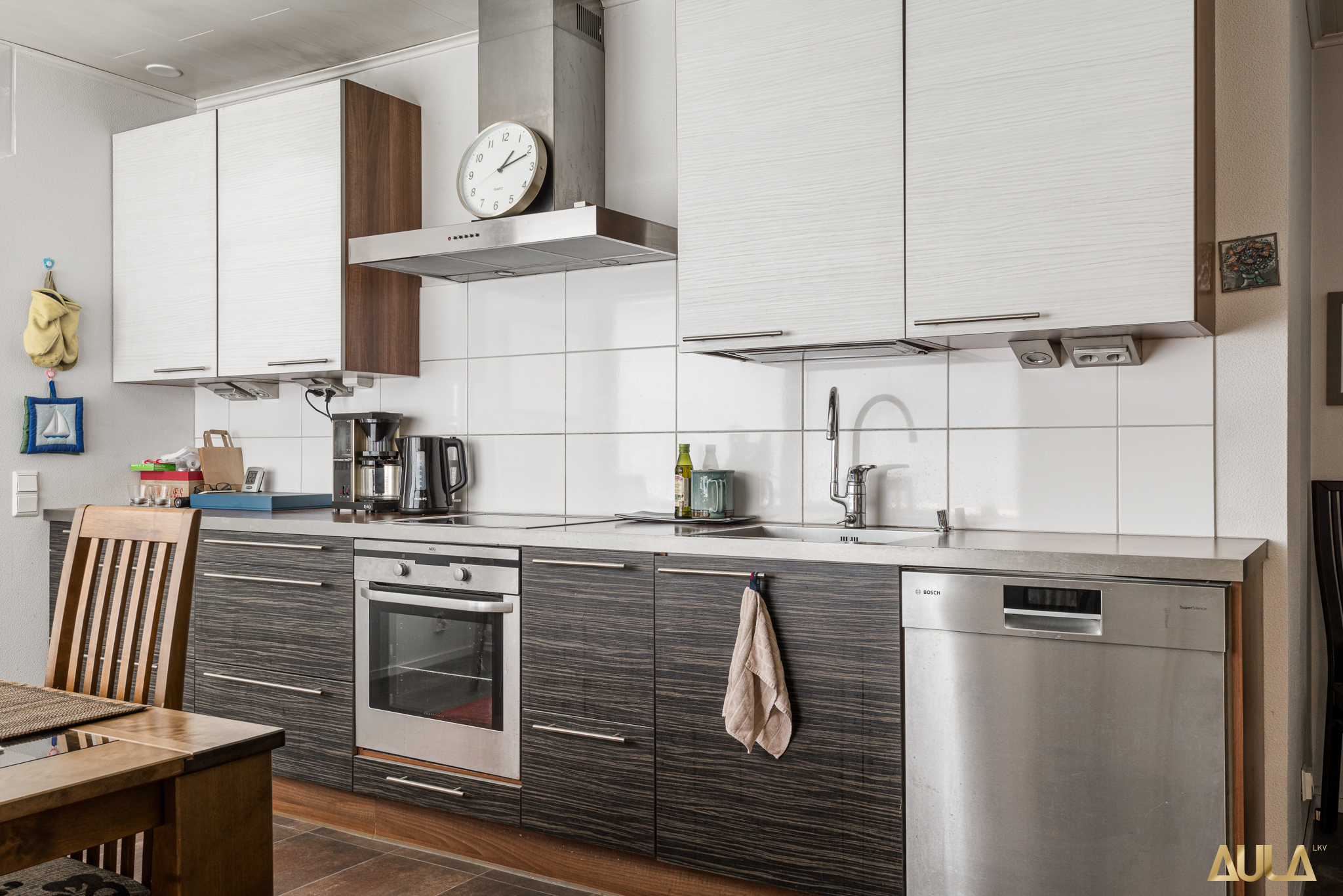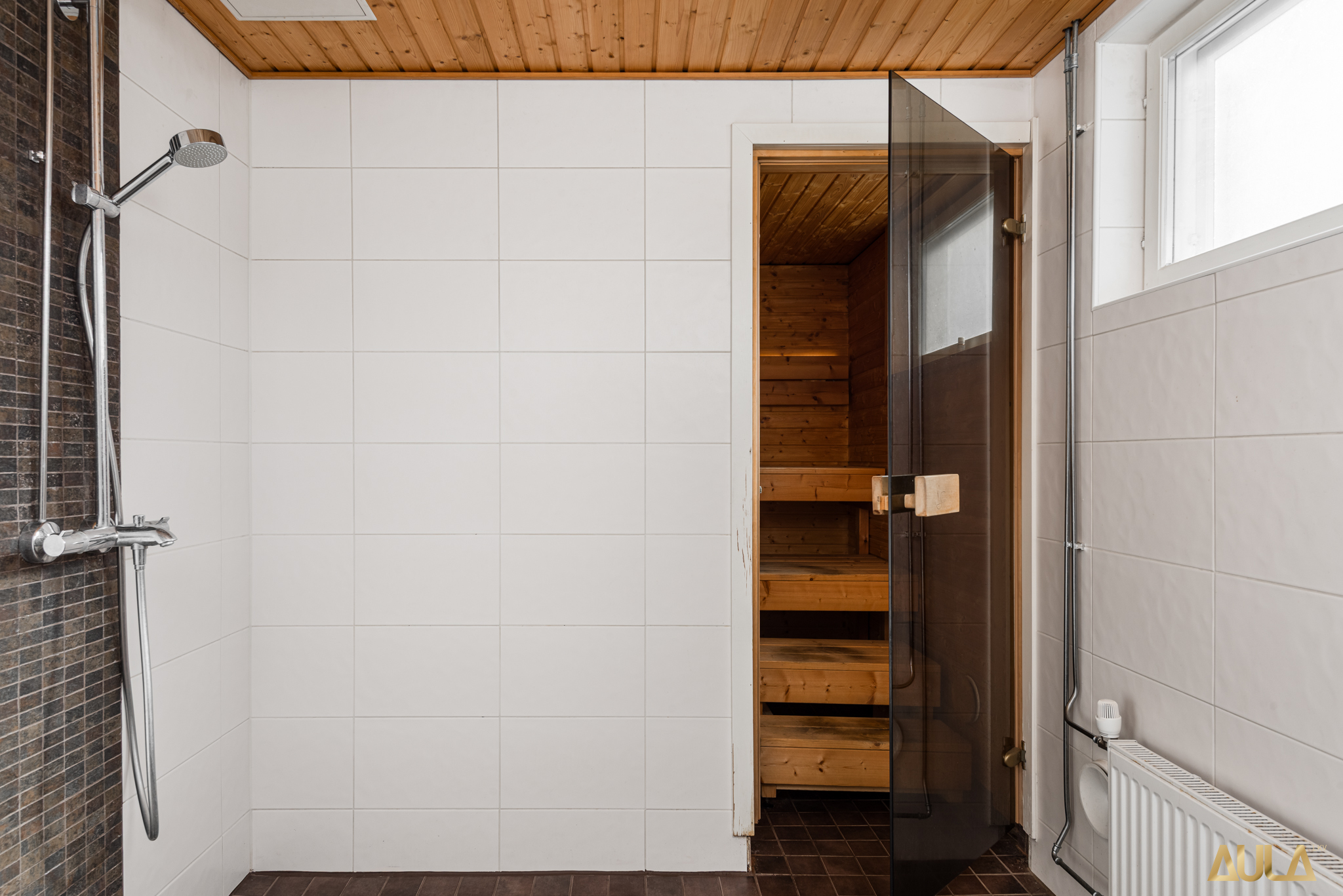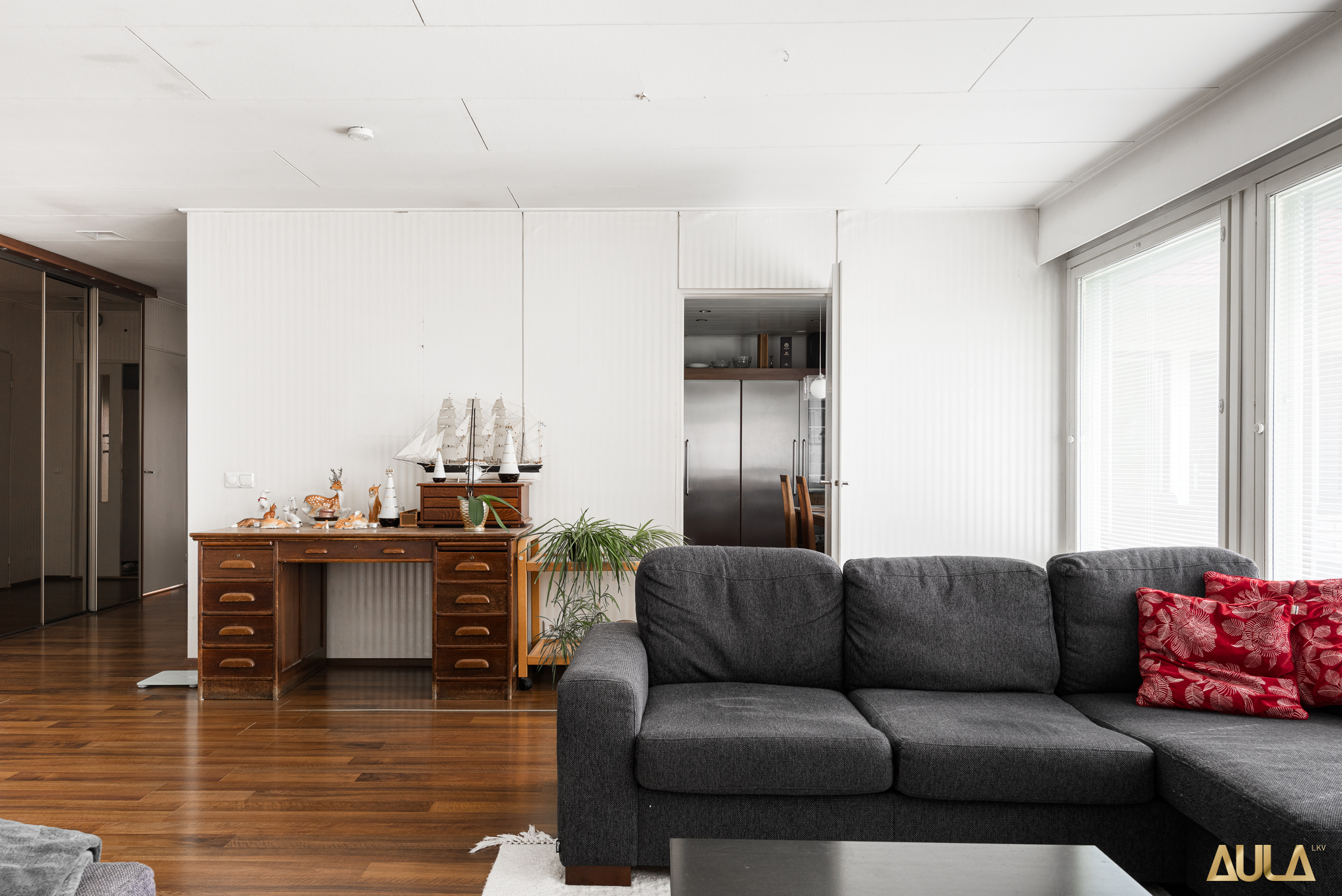 Talossa on tilava olohuone, josta näkee omalle pihalle. Kolme makuuhuonetta tarjoavat tilaa isommallekin perheelle. Olohuoneeseen on myös rakennettu työtila, mitä on myös käytetty makuuhuoneena. Mikäli olet viinien ystävä niin 2011 uusitusta keittiöstä löydät oman viinikaapin, josta voit ottaa pullon lemppari viiniäsi ja tarjoilla hyvän ruuan ohella.