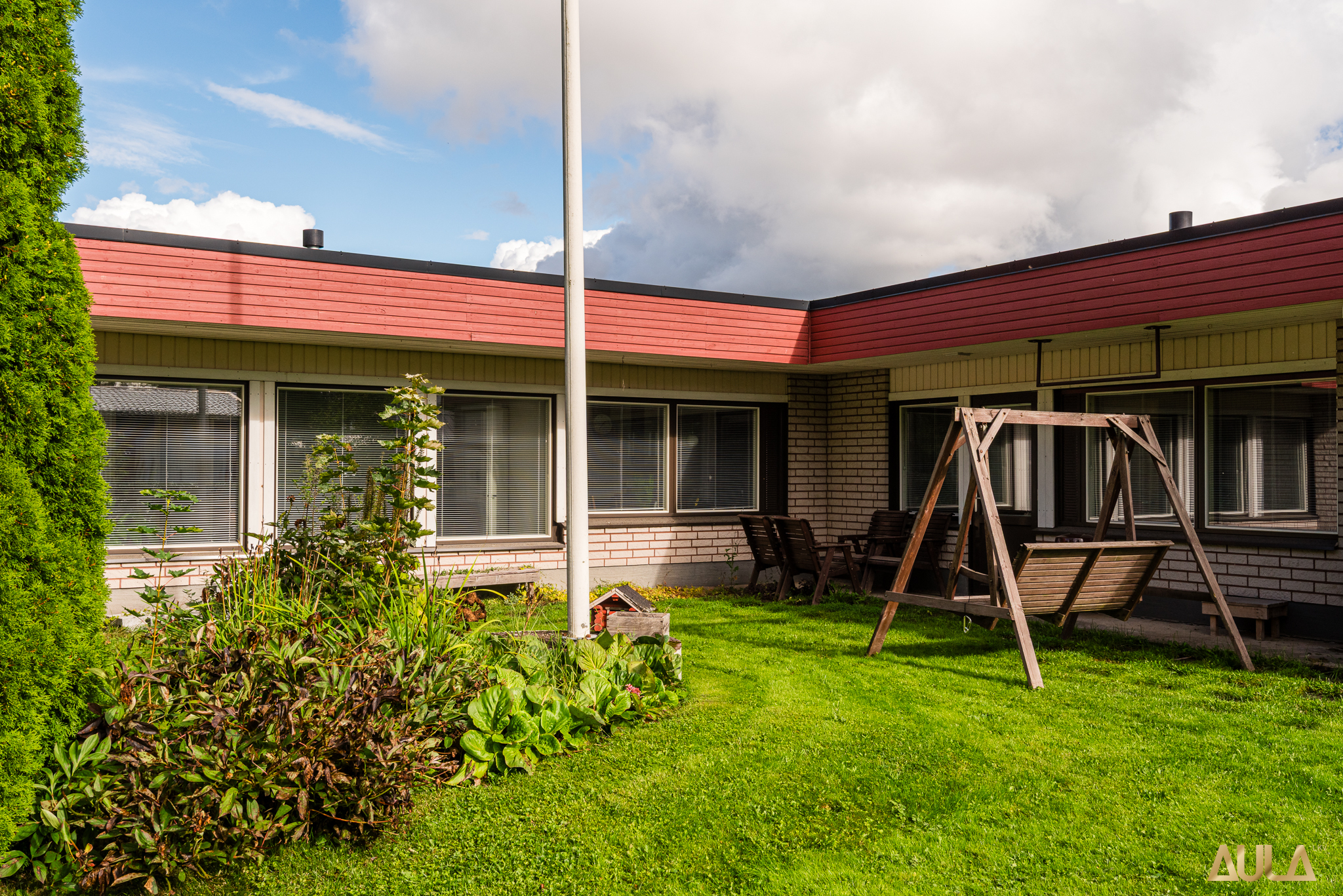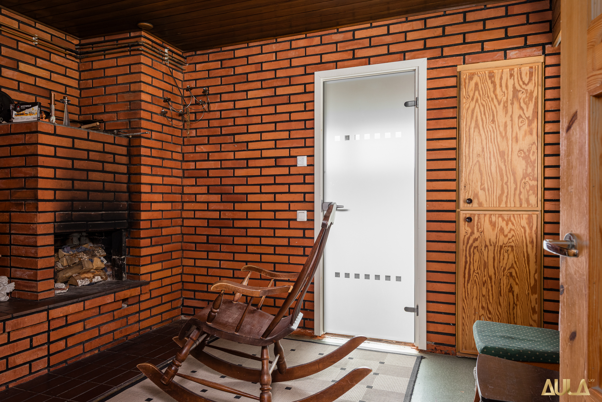 Talven kylminä iltoina on mukavaa istuutua aloilleen takkahuoneeseen lämpimän tulen äärelle ja lukea samalla, vaikka suosikki kirjaansa, samalla kun odottaa saunan lämmitystä. Kun on aika vilvoittelulle voikin käydä ulos ihastelemaan pihaa, jossa lasten leikkimökki, sekä erilaisia marjapensaita ja istutuksia.