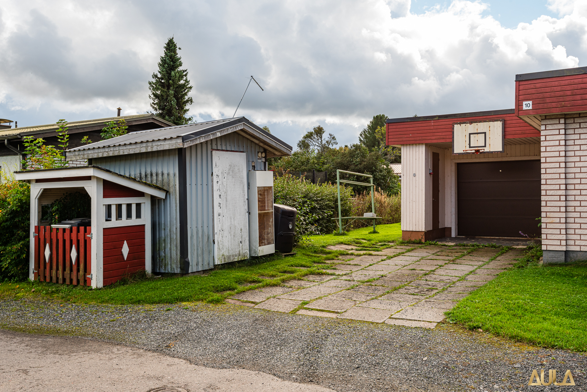 Auton saat kätevästi autotalliin ja mikäli lisää varastotilaa tarvitset, niin etupihalta löydät vanhan kylmäkontin, joka toimii varastona.