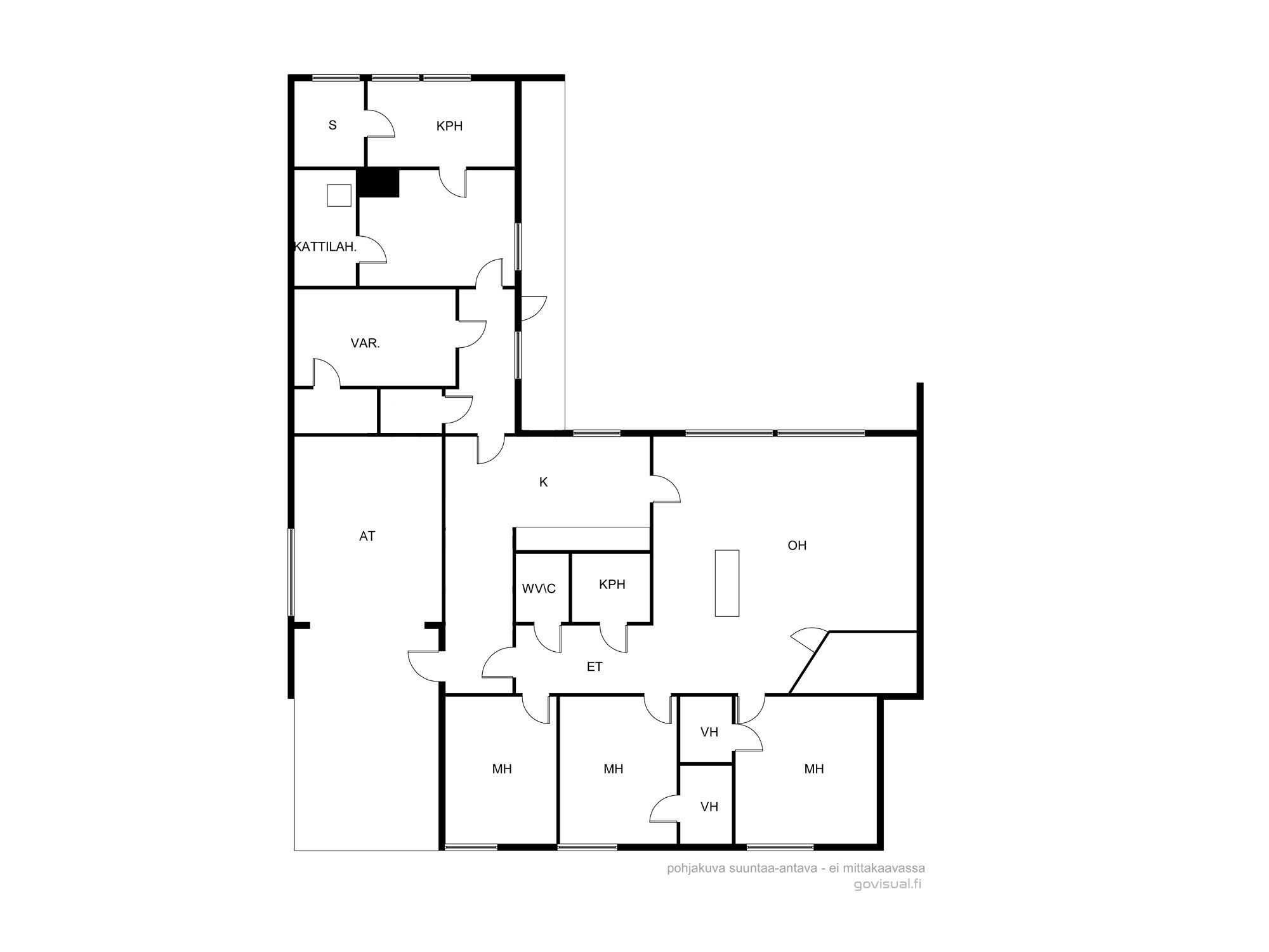 Takkahuoneessa Avotakka. Kulku kylpyhuoneeseen ja pannuhuoneeseen