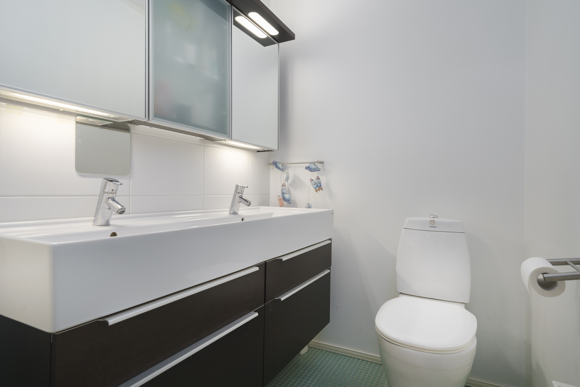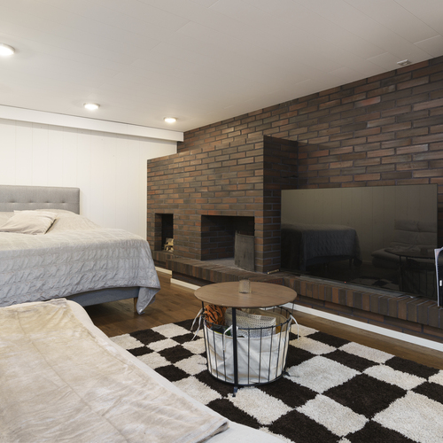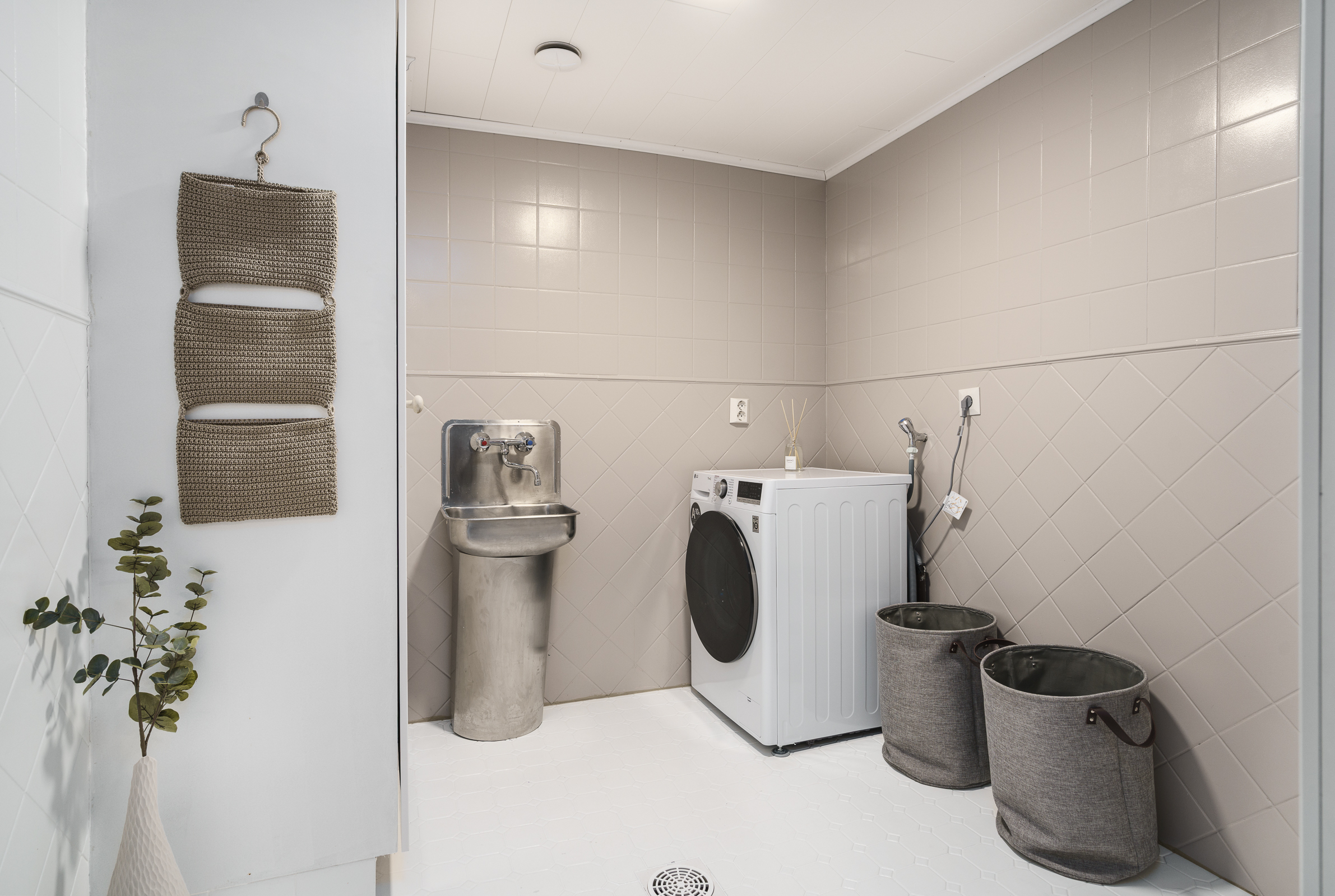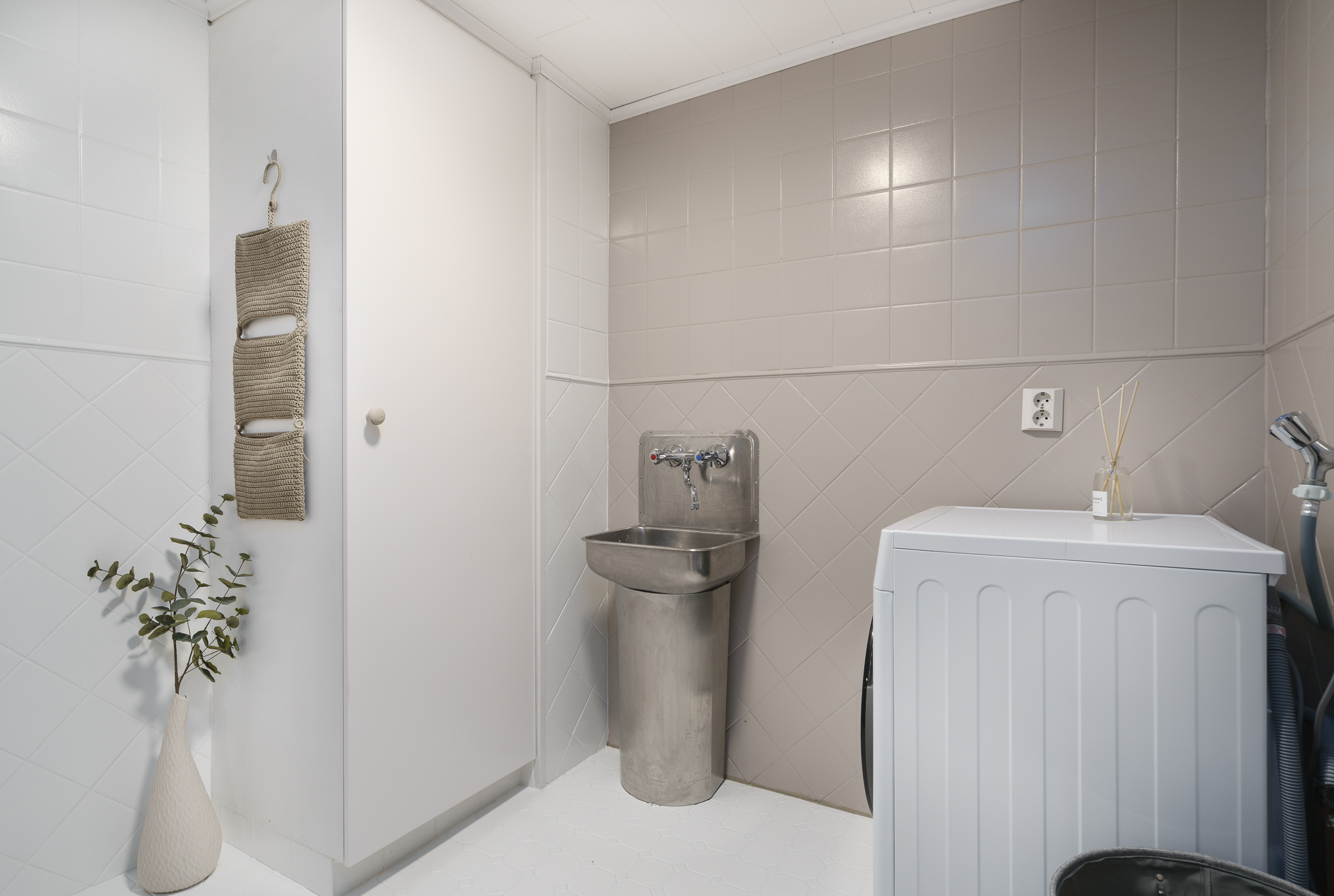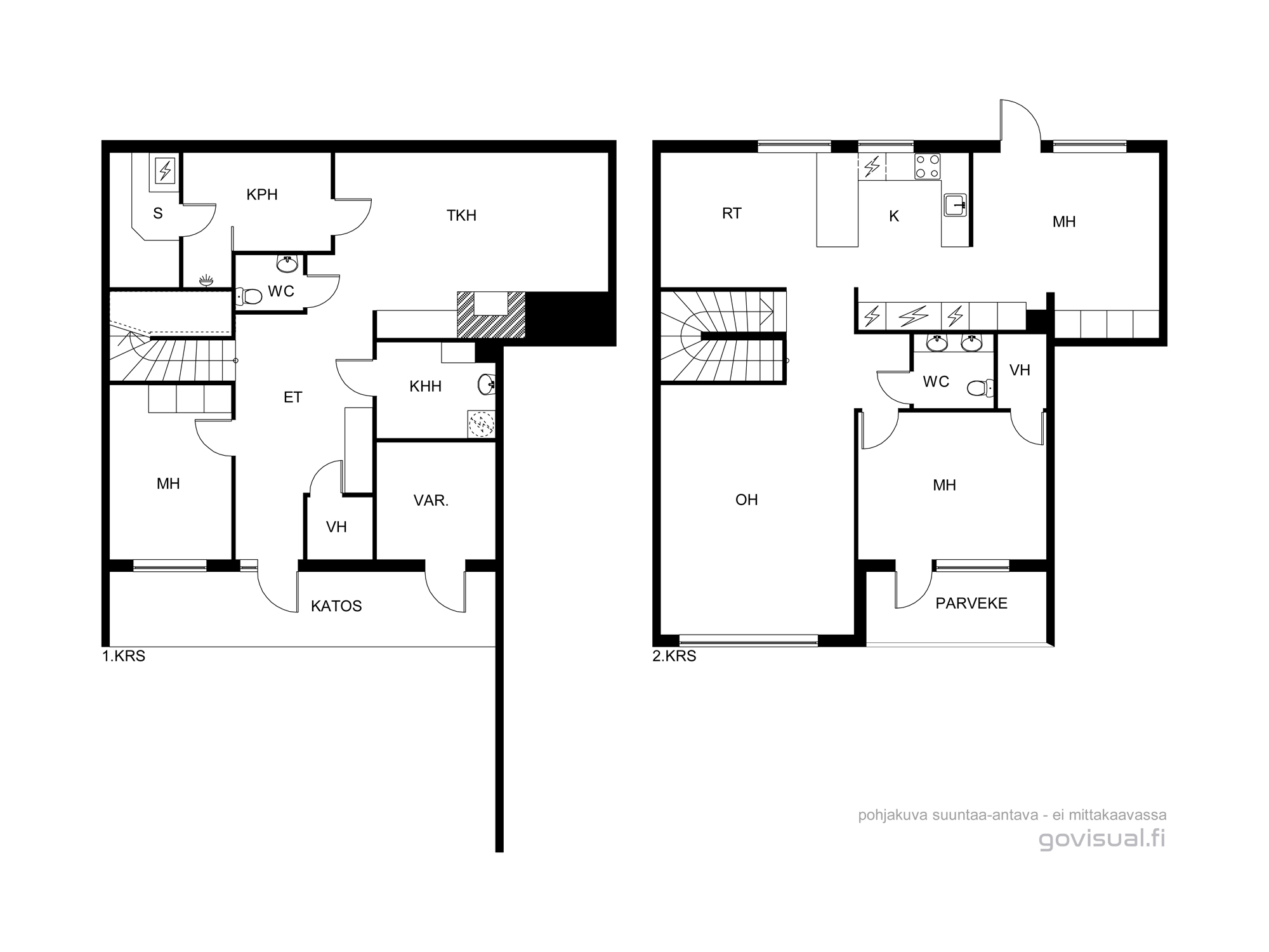 Pintamateriaalit: Alakerran makuuhuoneessa laminaattilattia, takkahuoneessa parketti. Yläkerrassa on vinyylikorkkilattia, joka kestää kosteutta, elämisen jälkiä ja on hiljainen. Seinät tapetoitu tai maalattu.