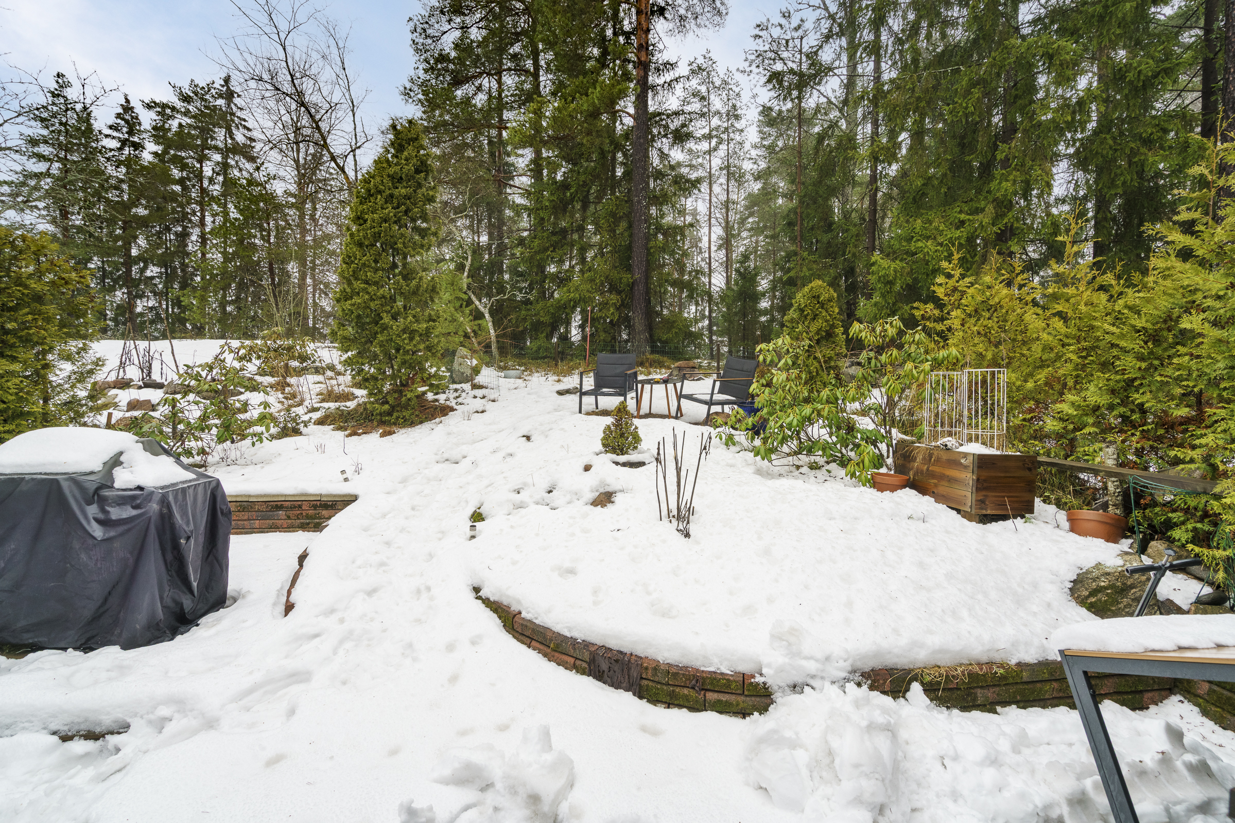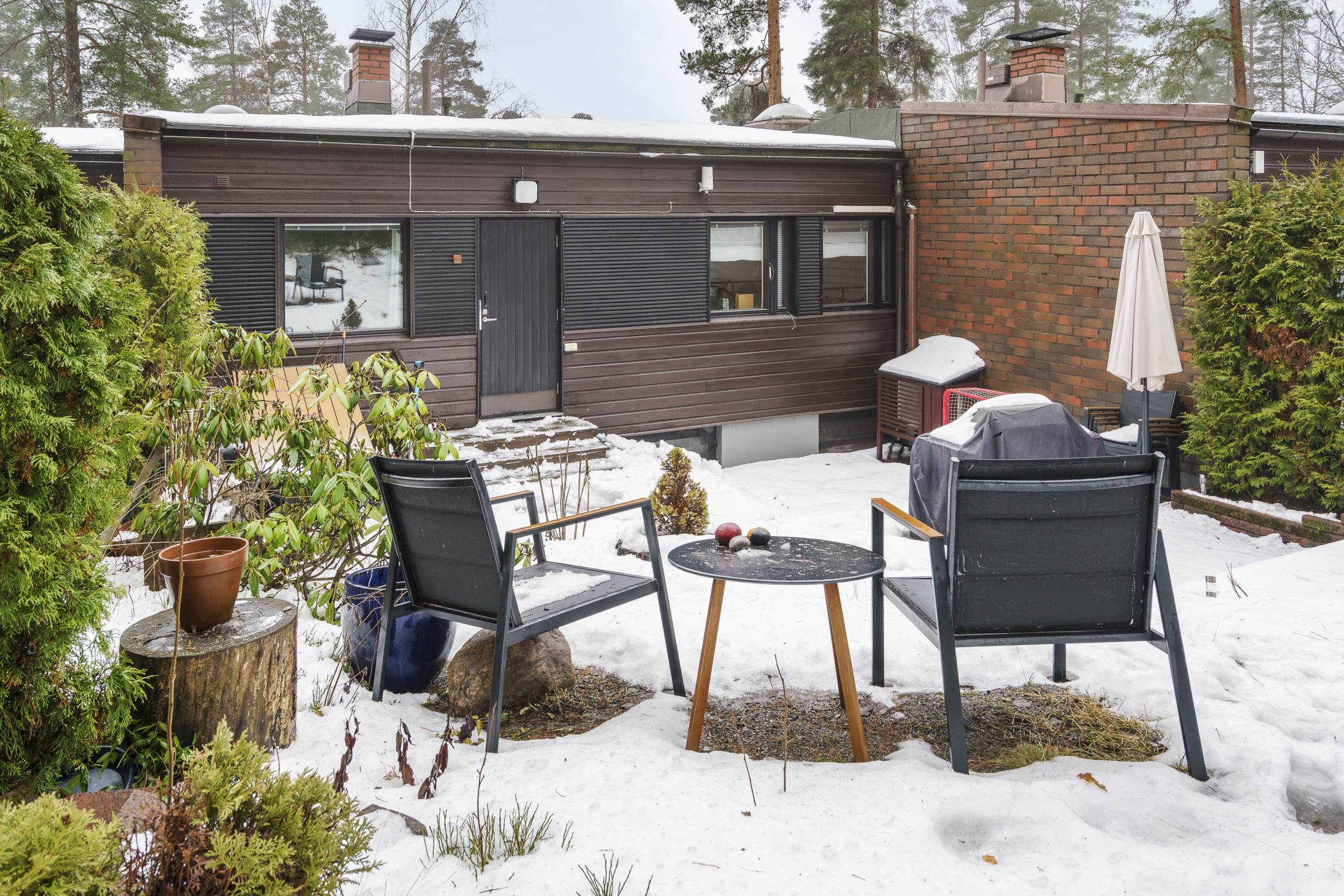 Huoneistossa on viilentävä ilmalämpöpumppu. Jokaiseen asuntoon kuuluu katospaikka ja pistokkeellinen autopaikka. Puistoon rajoittuva terassi tarjoaa rauhallisen suojaisan oleskelupaikan. Tässä asunnossa on terassin yhteydessä kasvimaa, jossa kasvaa mm. mansikoita ja etupihalla on kukkapenkki, jossa tuoksuvat mm. pionit tuoden pihaan vehreyttä ja puutarhan tunnelmaa.