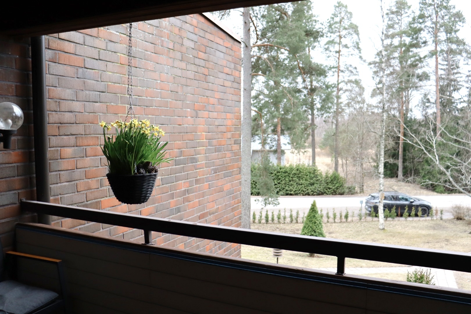 Huoneistossa on viilentävä ilmalämpöpumppu. Jokaiseen asuntoon kuuluu katospaikka ja pistokkeellinen autopaikka. Puistoon rajoittuva terassi tarjoaa rauhallisen suojaisan oleskelupaikan. Tässä asunnossa on terassin yhteydessä kasvimaa, jossa kasvaa mm. mansikoita ja etupihalla on kukkapenkki, jossa tuoksuvat mm. pionit tuoden pihaan vehreyttä ja puutarhan tunnelmaa.