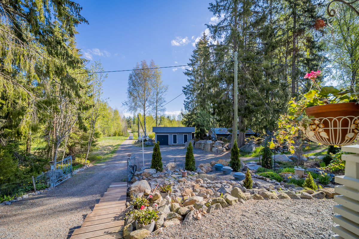Hyvin hoidettu tontti, johon kuuluu hieman erillään oleva pieni metsäalue,