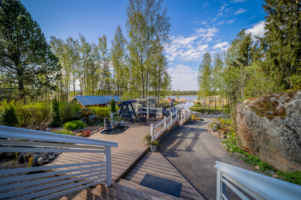 Hyvin hoidettu rinnetontti laskee omaan rantaan