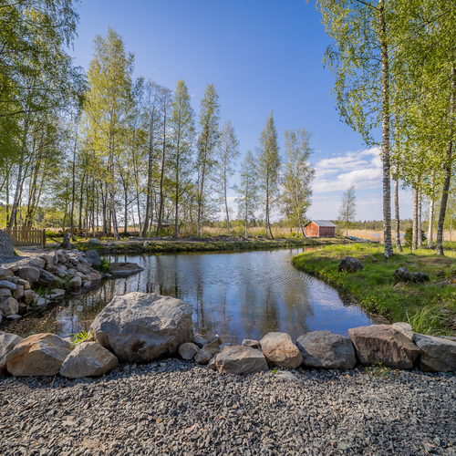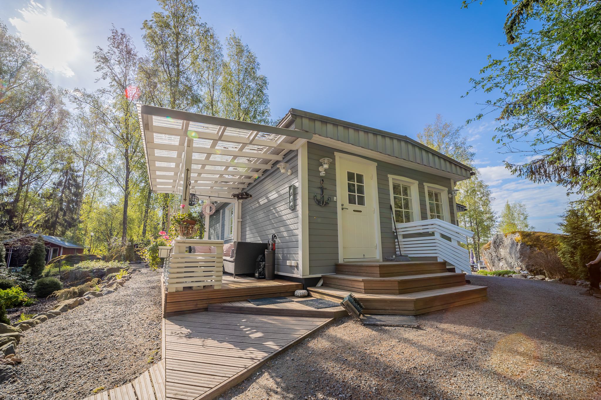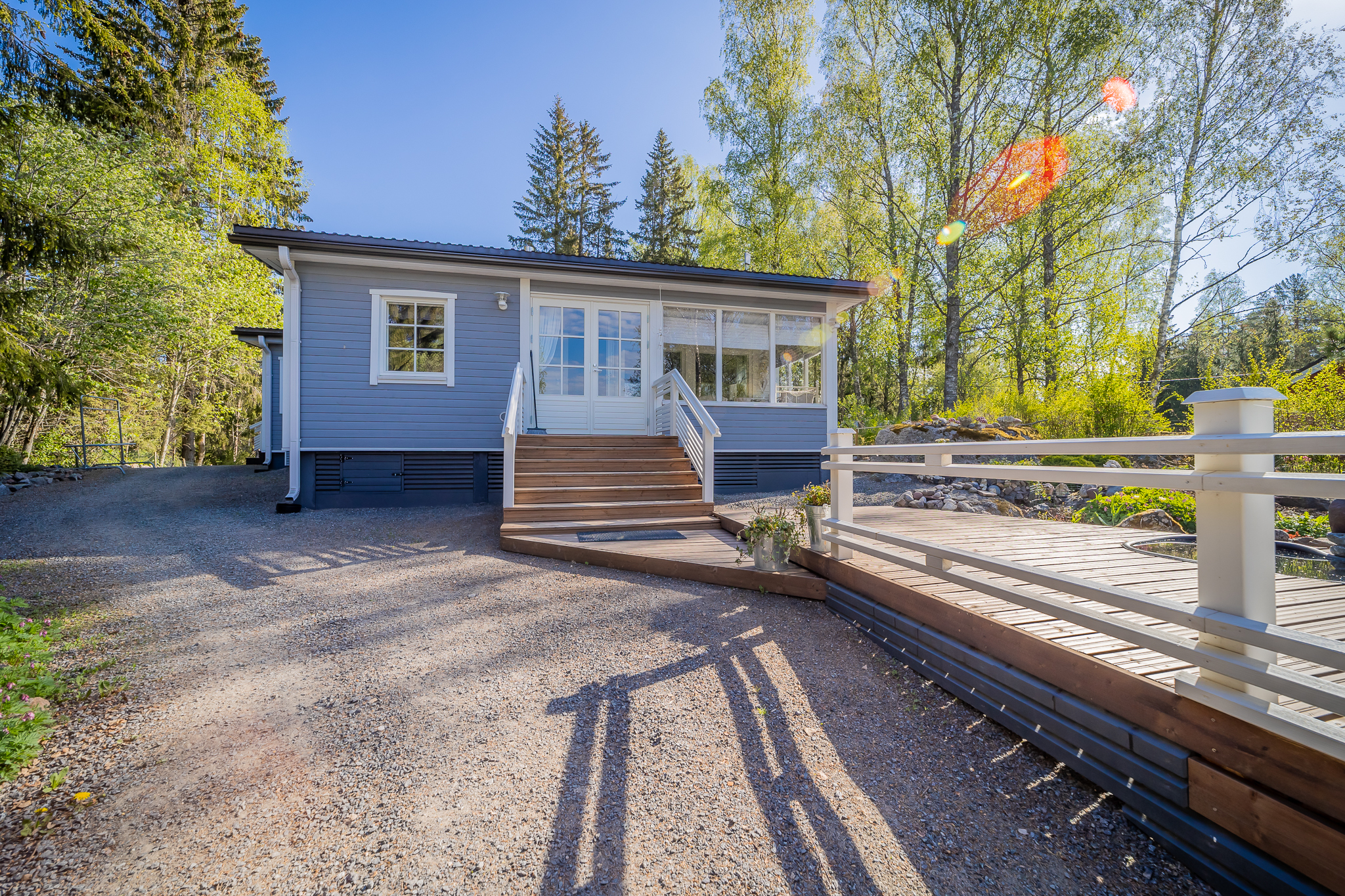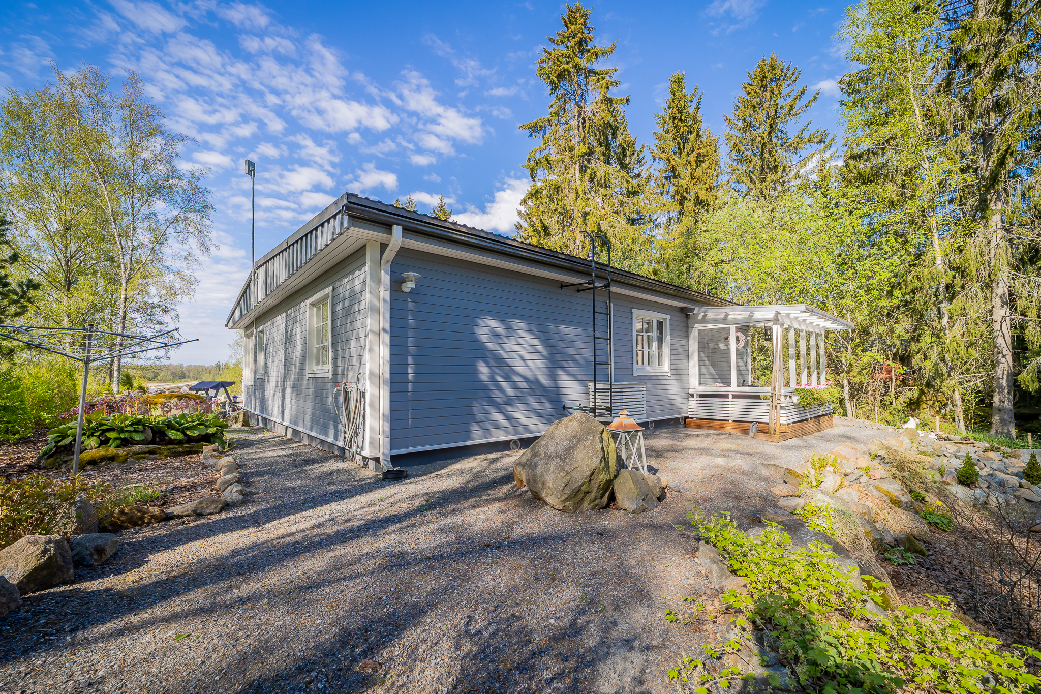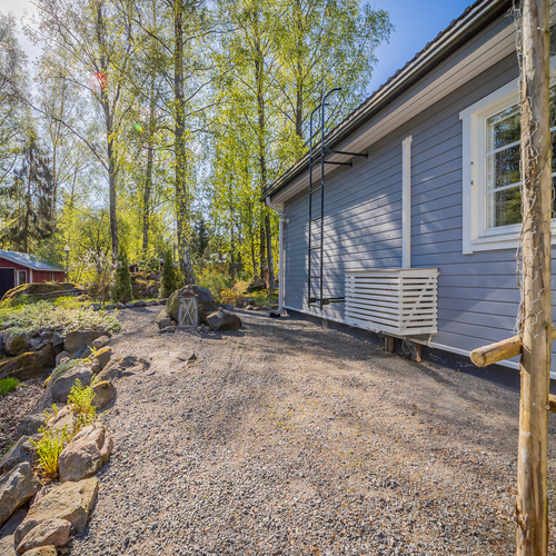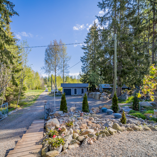 Hyvin hoidettu tontti, johon kuuluu hieman erillään oleva pieni metsäalue,