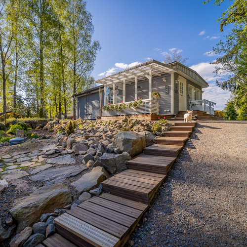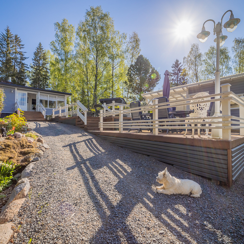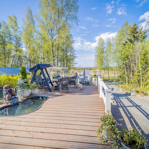 Hyvin hoidettu rinnetontti laskee omaan rantaan