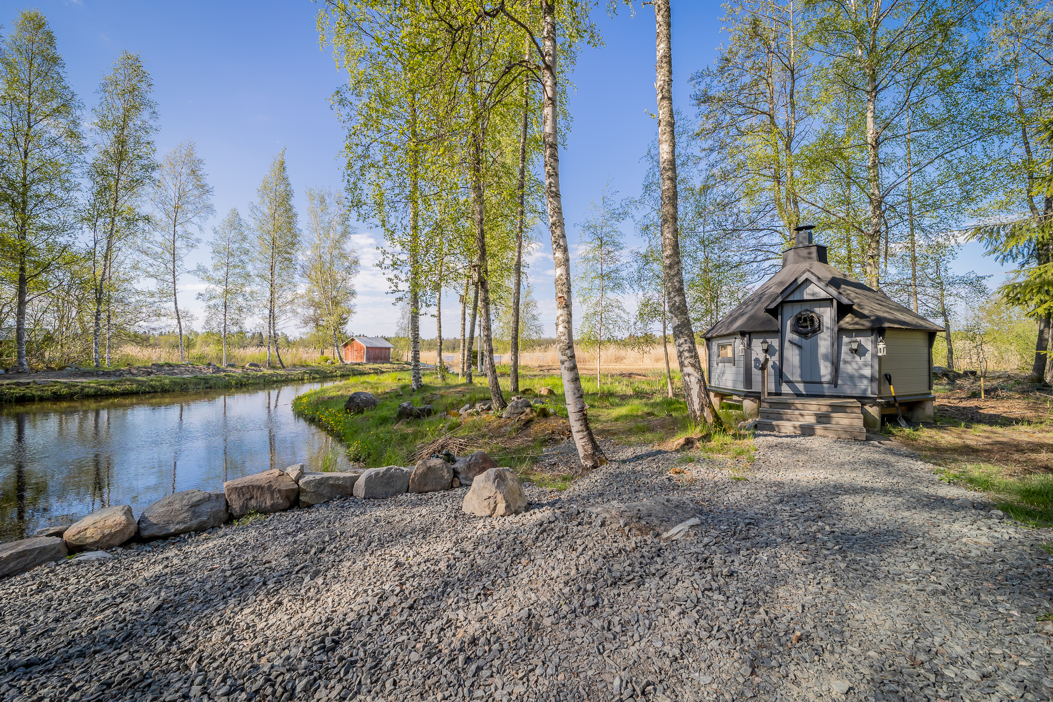 Rannalla on lisäksi grillikota sekä verkkovaja.