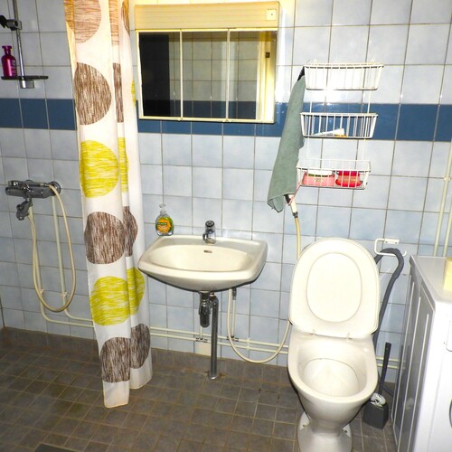 Varusteet: suihku, kiinteät valaisimet, pesukoneliitäntä, peilikaappi