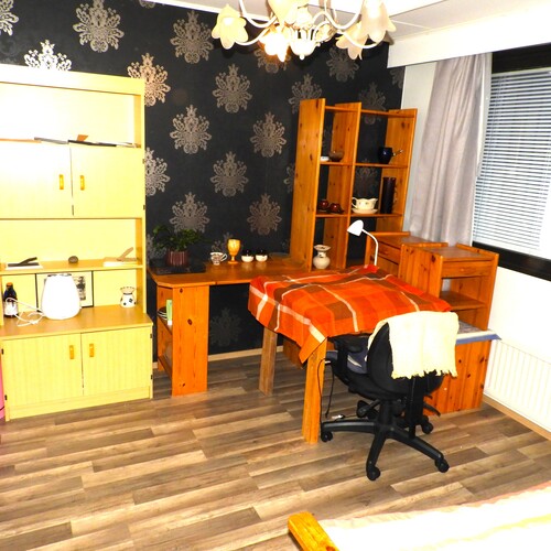 Varusteet: jääkaappipakastin, pesukoneliitäntä, sähköliesi, liesituuletin hormilla