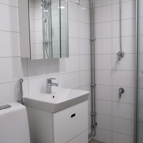 2025-2026 Perinteinen linjasaneeraus. Linjasaneerauksessa uusitaan viemärit perinteisellä menetelmällä, saneerataan täydellisesti kaikkien huoneistojen märkätilat sekä taloyhtiön saunatilat sekä pesutupatilat ja uusitaan vesikalusteet, asennetaan huoneistokohtainen vedenmittausjärjestelmä, uusitaan sadevesiviemärit, säädetään ja tasapainotetaan patteriverkosto ja uusitaan patteriventtiilit, kylpyhuonetiloista poistetaan patterit ja korvataan ne sähköisellä lattialämmityksellä.