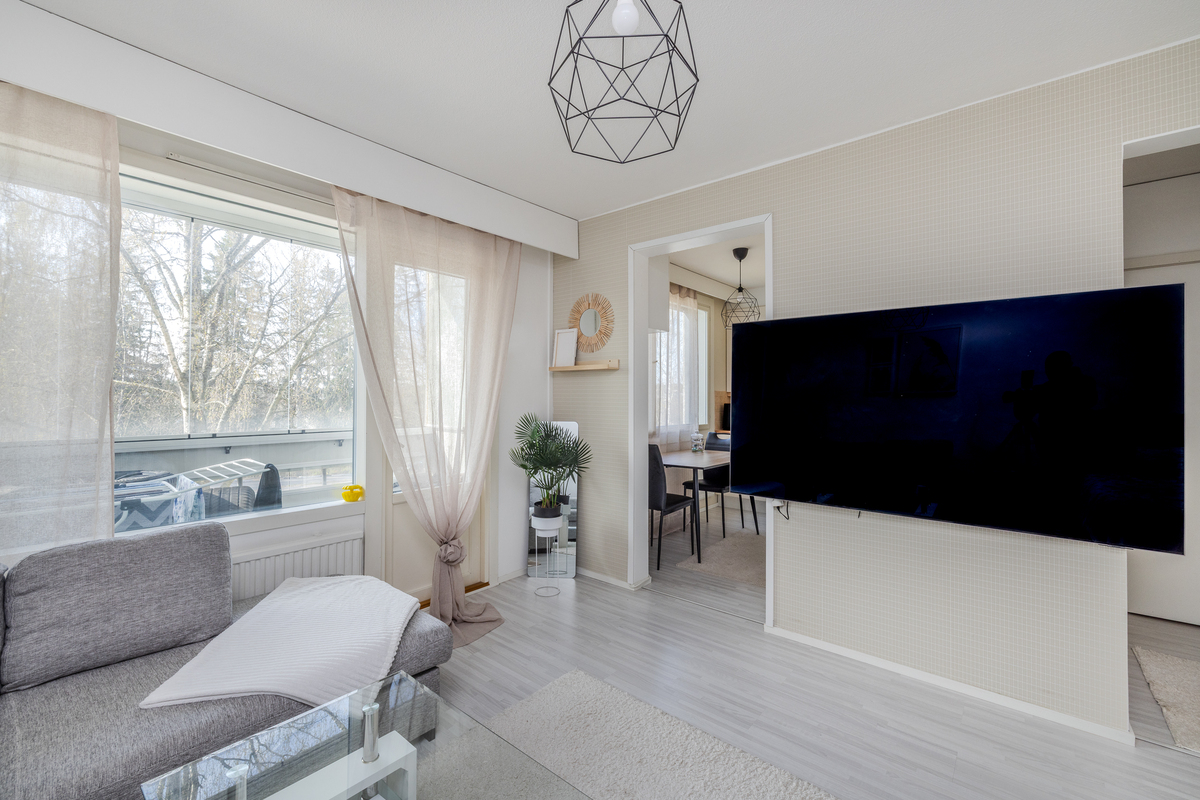 Toimivapohjainen ja hyvässä kunnossa oleva koti, jonka isolta lasitetulta parvekkeelta avautuvat näkymät avarasti etelään.
