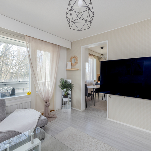 Toimivapohjainen ja hyvässä kunnossa oleva koti, jonka isolta lasitetulta parvekkeelta avautuvat näkymät avarasti etelään.