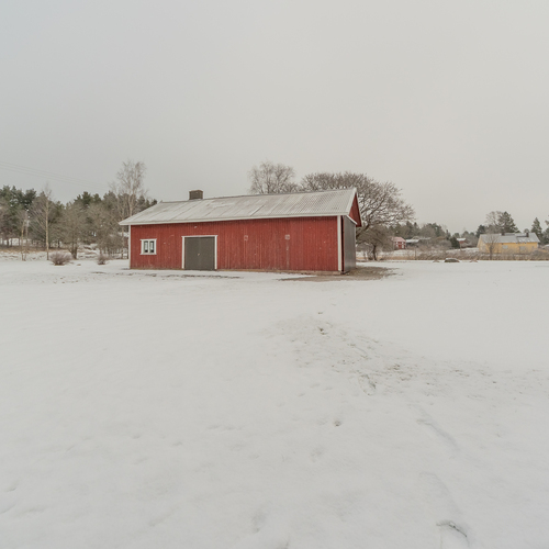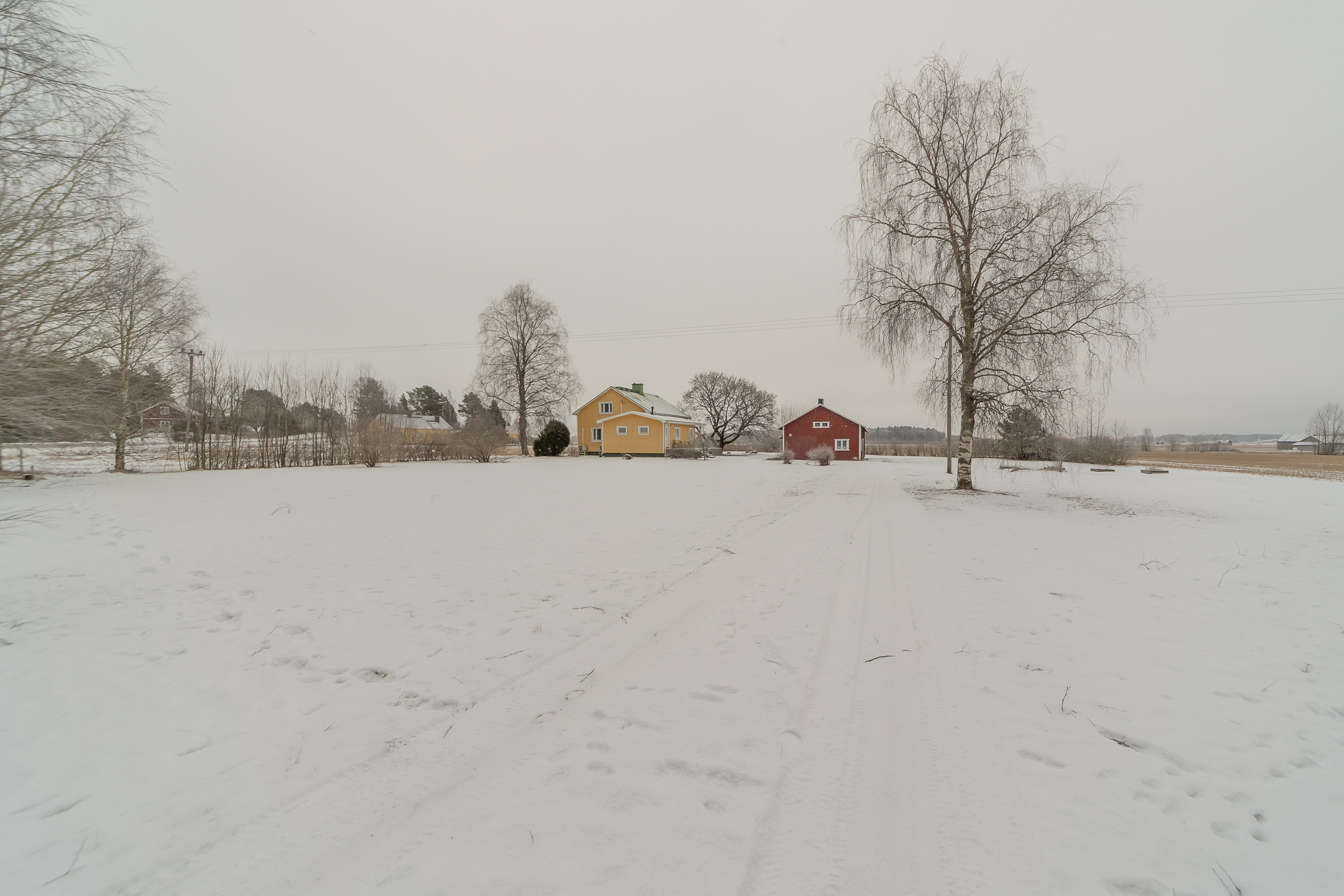 Pihassa on 70 m²:n suuruinen talousrakennus, jonka toisessa päädyssä iso autotalli, tien puoleisessa päädyssä varastotilaa.
