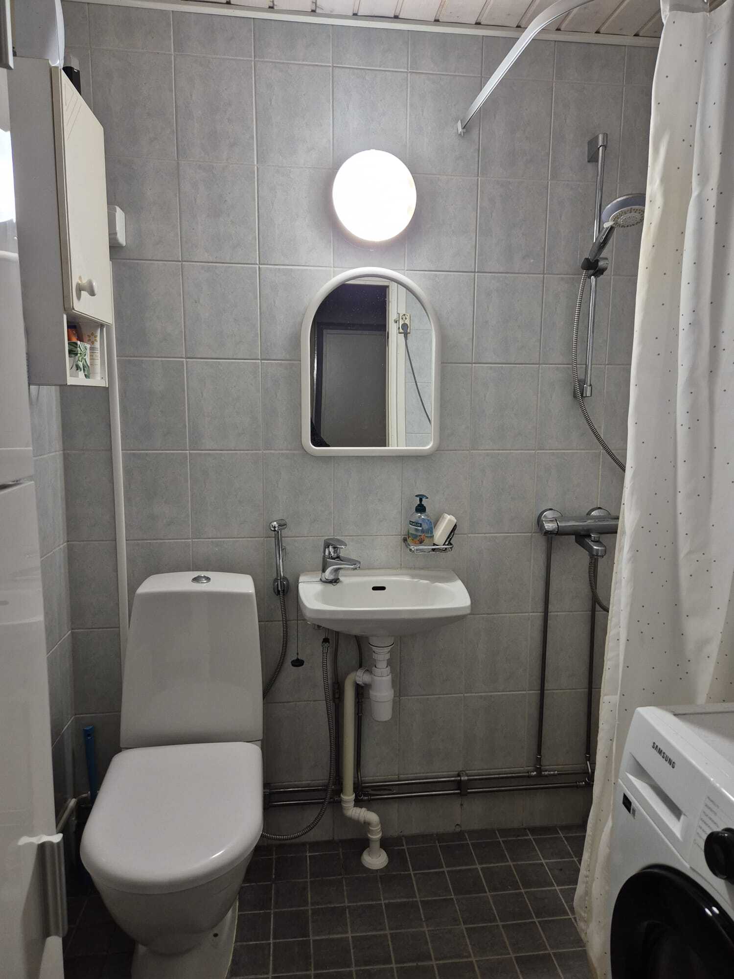 Kokonaan laatoitettu 2014. Suihku, peili, kaapisto, pesukoneliitäntä, bideesuihku.