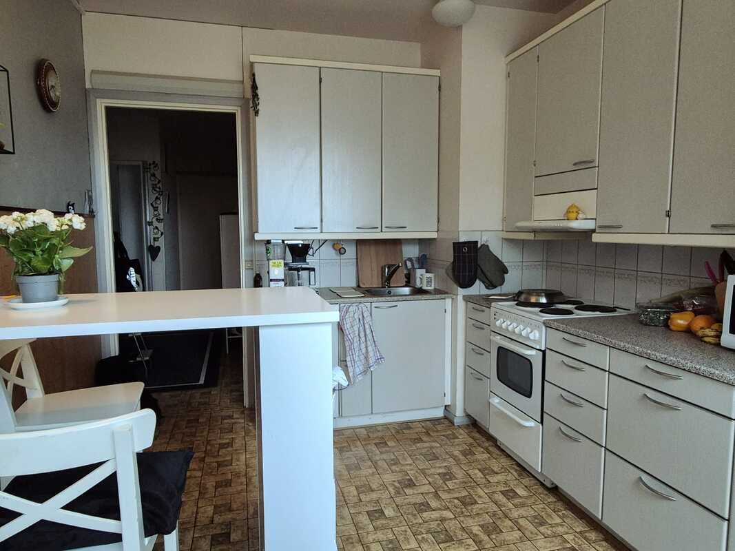 Remontoitu ilmeisesti -90-luvulla. Jääkaappi, pakastin, liesi, liesituuletin ja 45 cm leveä astianpesukone.