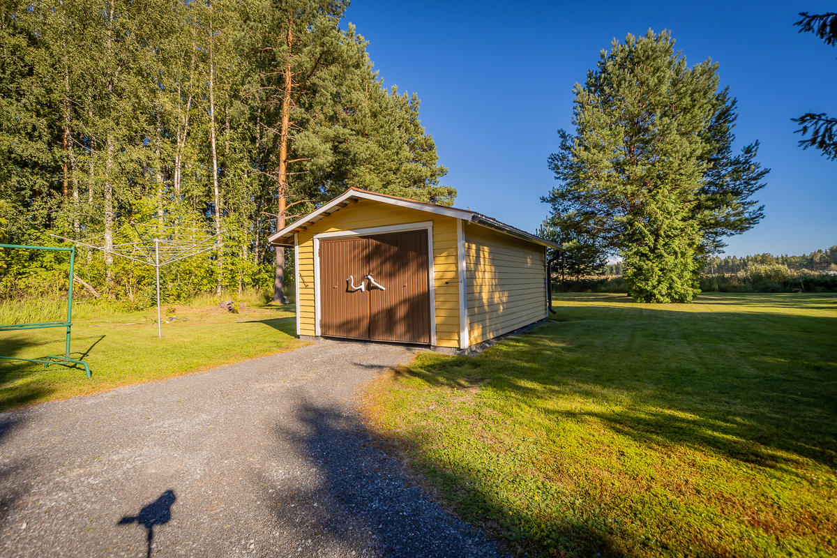 Talon päädyssä on autotalli ja autotallin takana varasto, jossa on 3.600 litran öljysäiliö. Lisäksi pihassa on 1978 rakennettu maapohjainen autotalli.