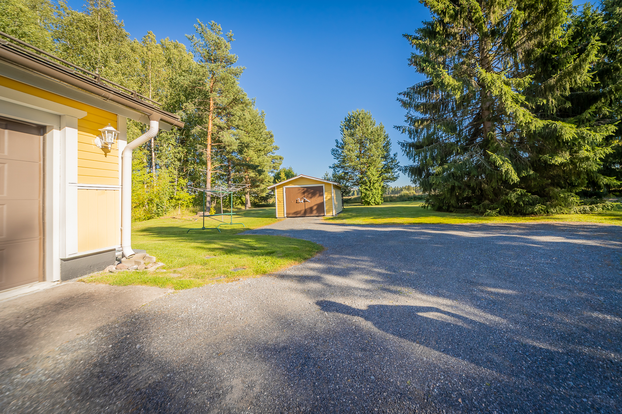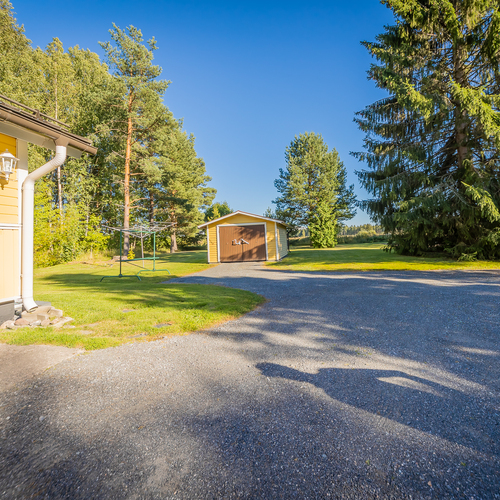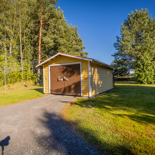 Talon päädyssä on autotalli ja autotallin takana varasto, jossa on 3.600 litran öljysäiliö. Lisäksi pihassa on 1978 rakennettu maapohjainen autotalli.