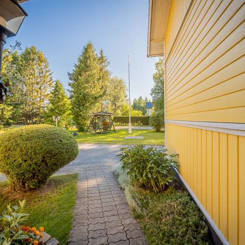 Viimeistä ruohontupsua myöden hoidettu piha ja ryhdikäs, vuonna 2022 uuden maalipinnan saanut talo toivottaa tulijansa todella tervetulleeksi ja kutsuu astumaan peremmälle – TERVETULOA!