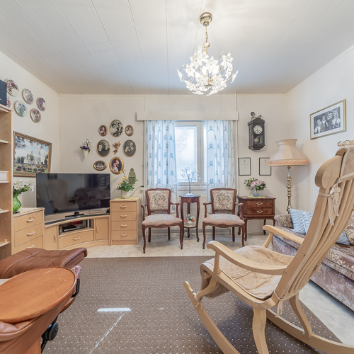 Tätä vuonna 1960 valmistunutta taloa on asuttu huolella ja vaikka sisätiloissa ei suuria remontteja olekaan tehty, kaikki on siistiä ja asumaan voi asettua heti.