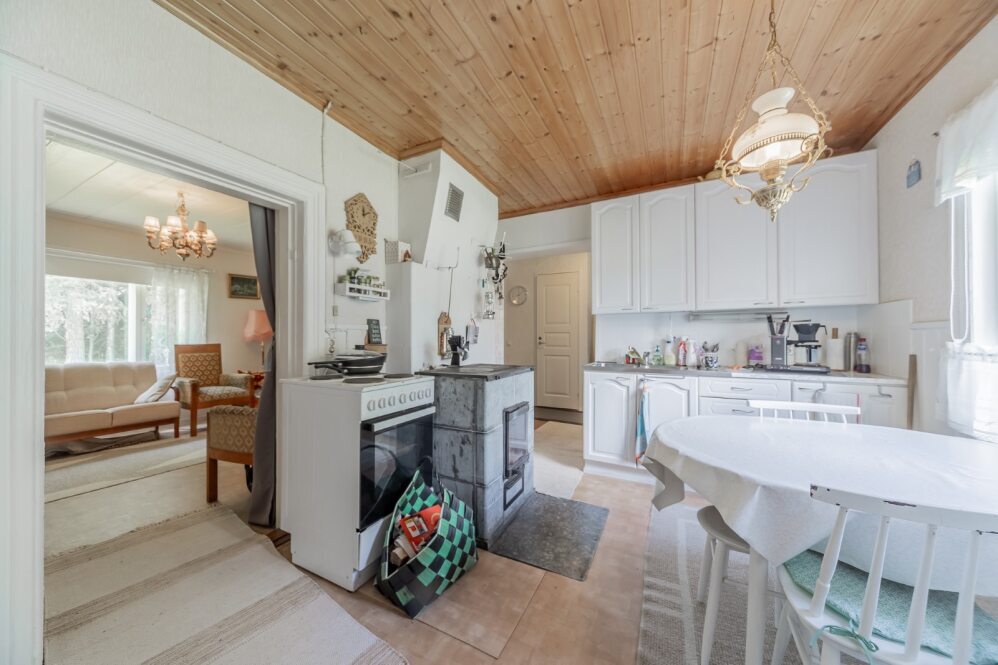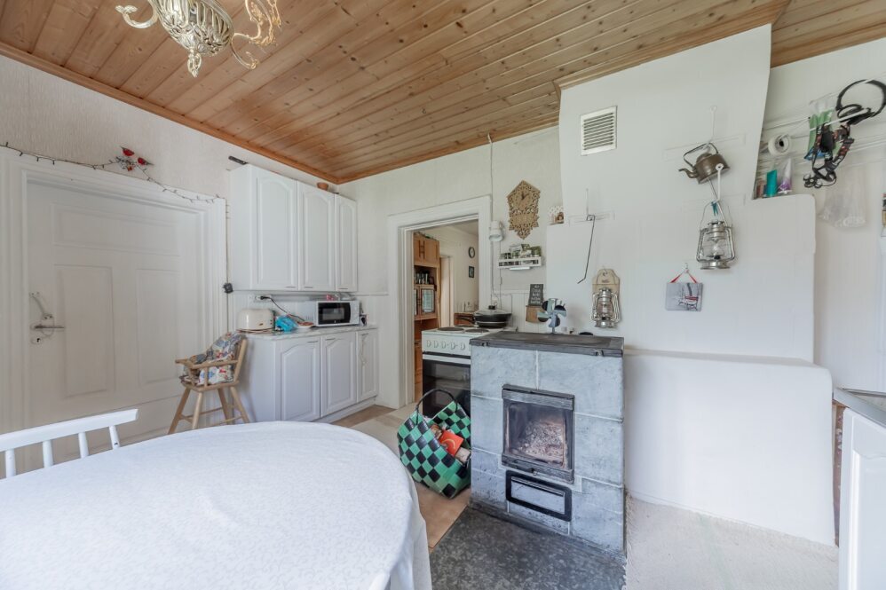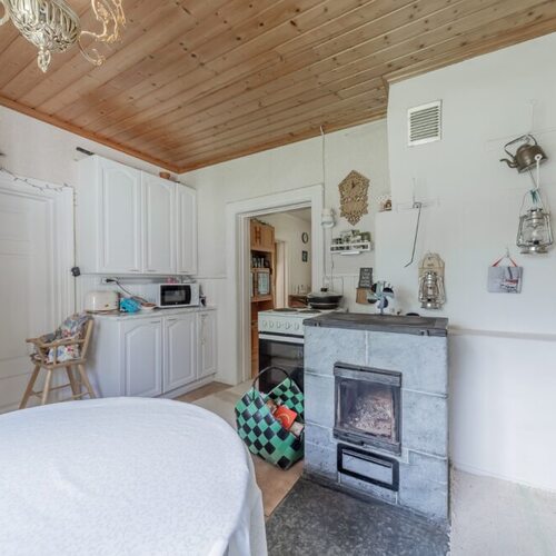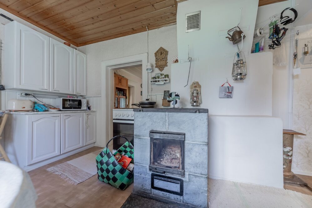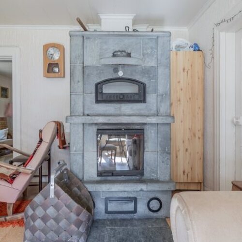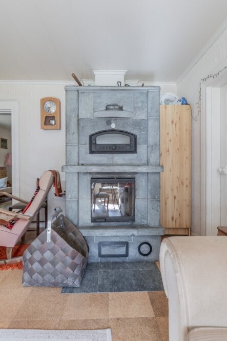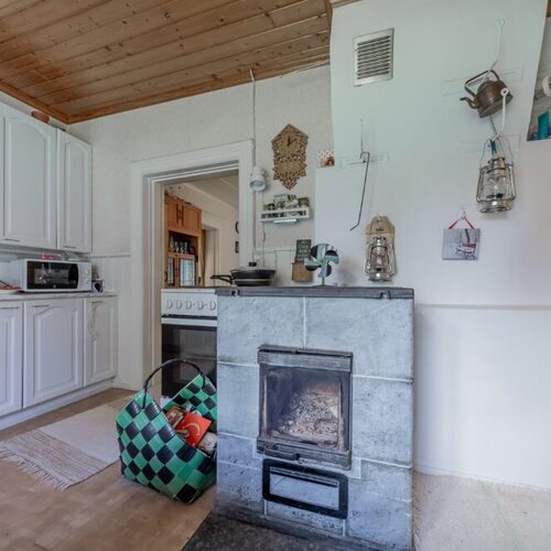 Makuuhuoneessa ilmalämpöpumppu, toisessa makuuhuoneessa pönttöuuni, olohuoneessa varaava takka/leivinuuni, keittiössä puuhella