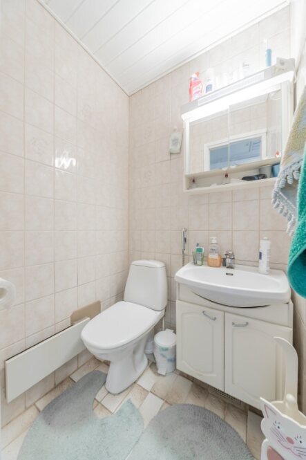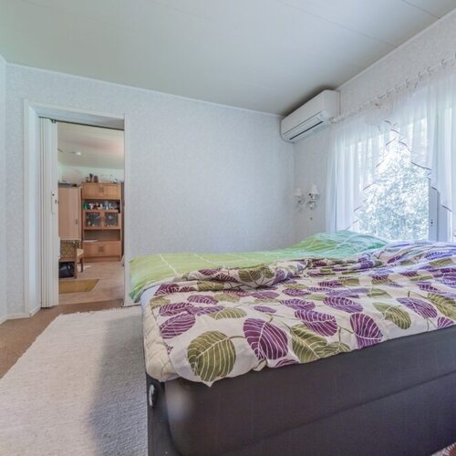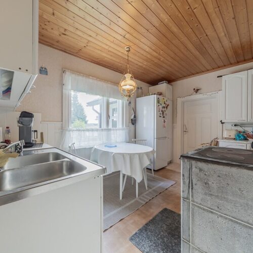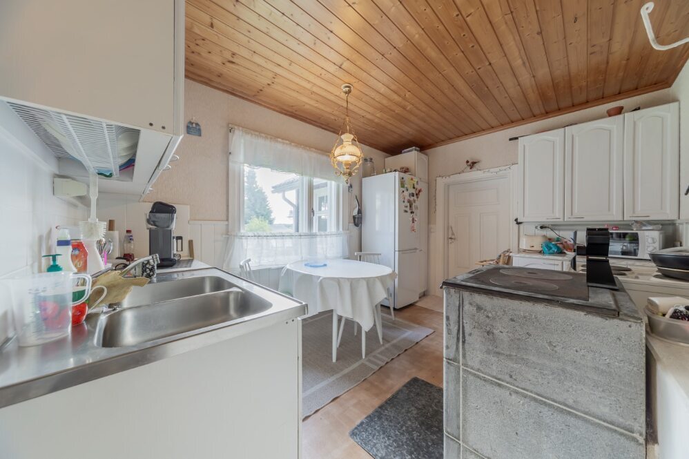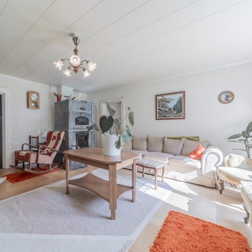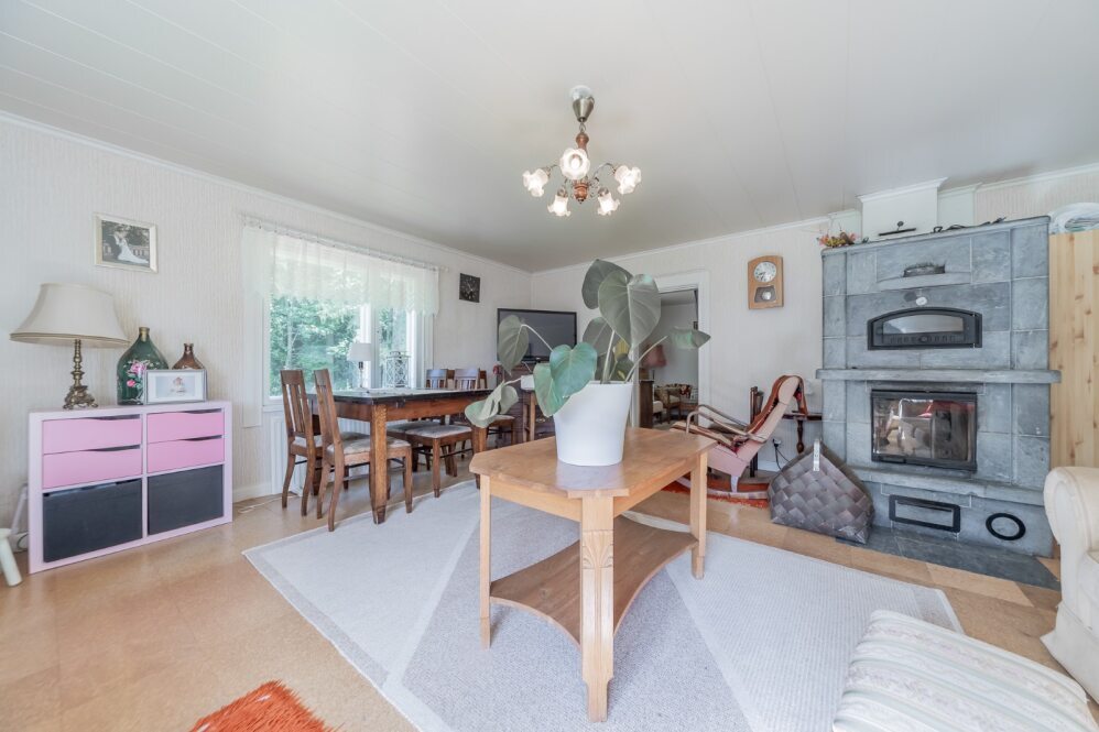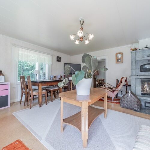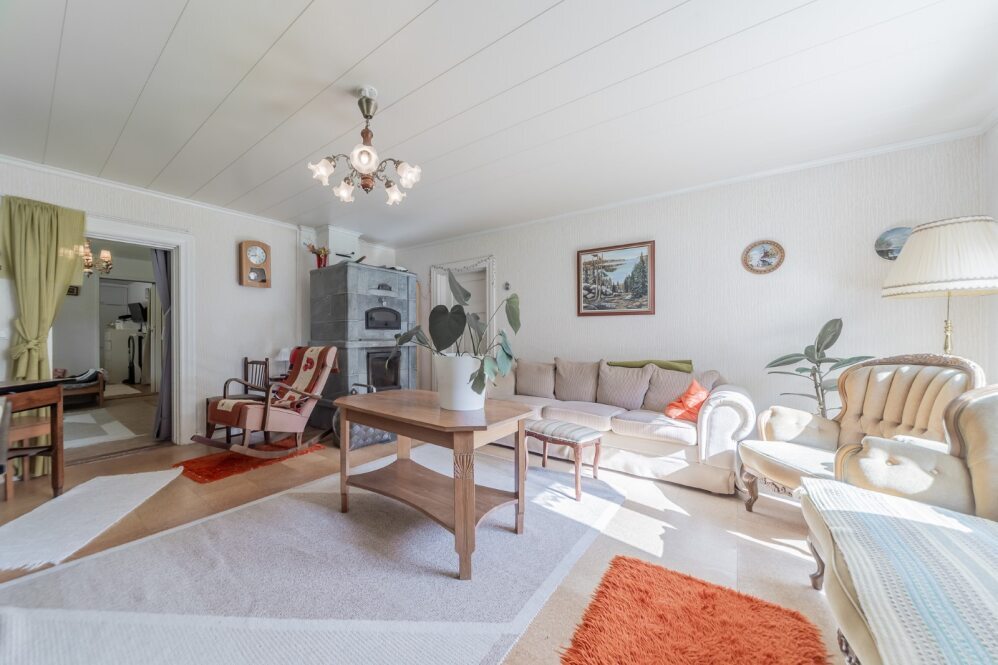 Makuuhuoneessa ilmalämpöpumppu, toisessa makuuhuoneessa pönttöuuni, olohuoneessa varaava takka/leivinuuni, keittiössä puuhella
