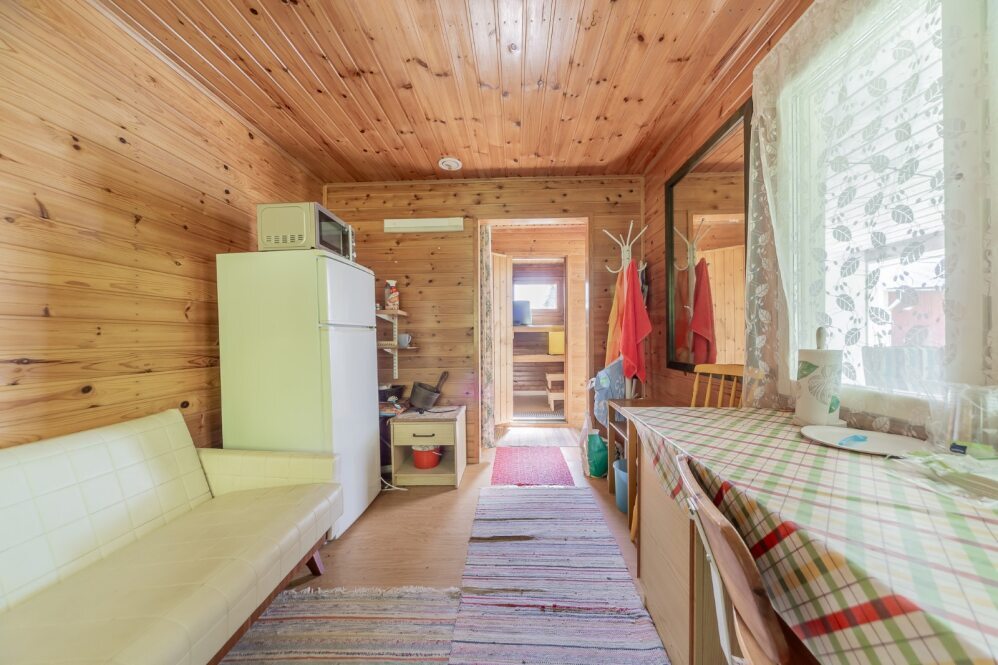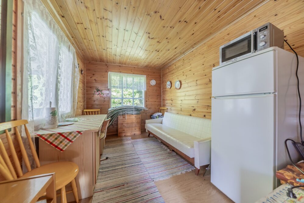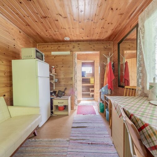 Talon keittiössä on puuhella, riittävästi kaappeja ja työtasoa sekä paikka ruokapöydälle. Keittiö avautuu oleskelu-/makuuhuoneeseen, jossa pönttöuuni. Talon nykyiseen olohuoneeseen on asennettu varaava takka/leivinuuni, huone on iso ja valoisa, ikkunat kahteen ilmansuuntaan. Olohuoneesta on käynti kuistille. Viimeisen laajennuksen yhteydessä rakennetun makuuhuoneen vieressä, talon toisessa päädyssä on wc, kylpyhuone sekä sähkölämmitteinen sauna.