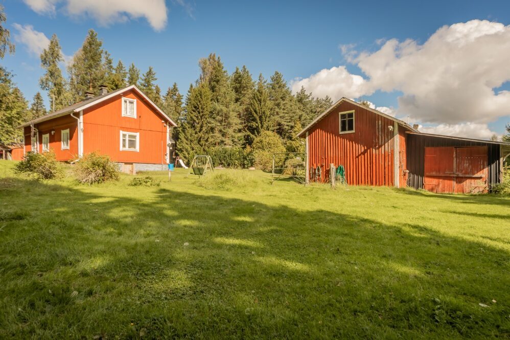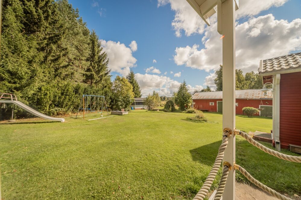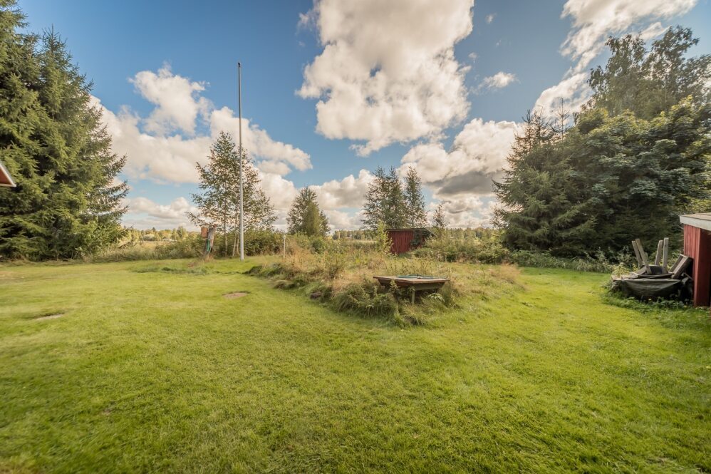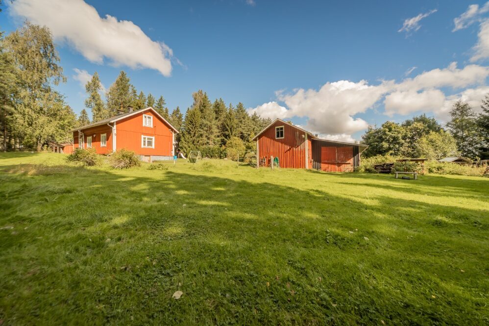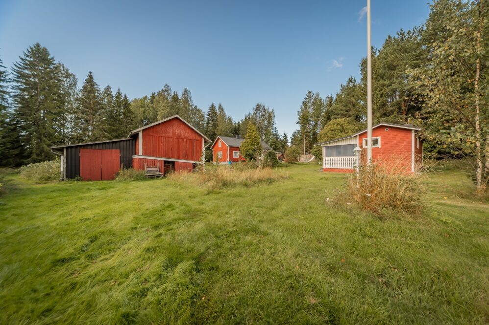 Reilun kolmen hehtaarin tonttiin kuuluu pihapiirin lisäksi noin hehtaarin suuruinen peltoalue sekä noin hehtaarin suuruinen metsä.