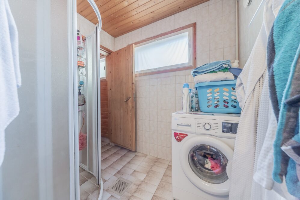 Rakennettu 1992, saunarakennuksessa viihtyisä saunakamari, saunassa puulämmitteinen kiuas, saunarakennuksen edessä katettu terassi