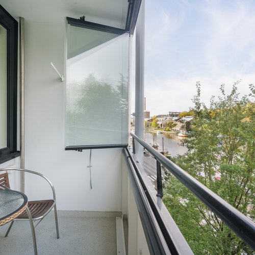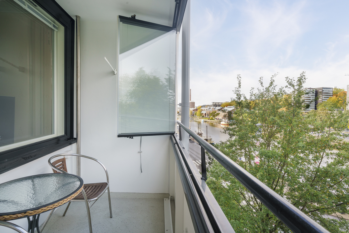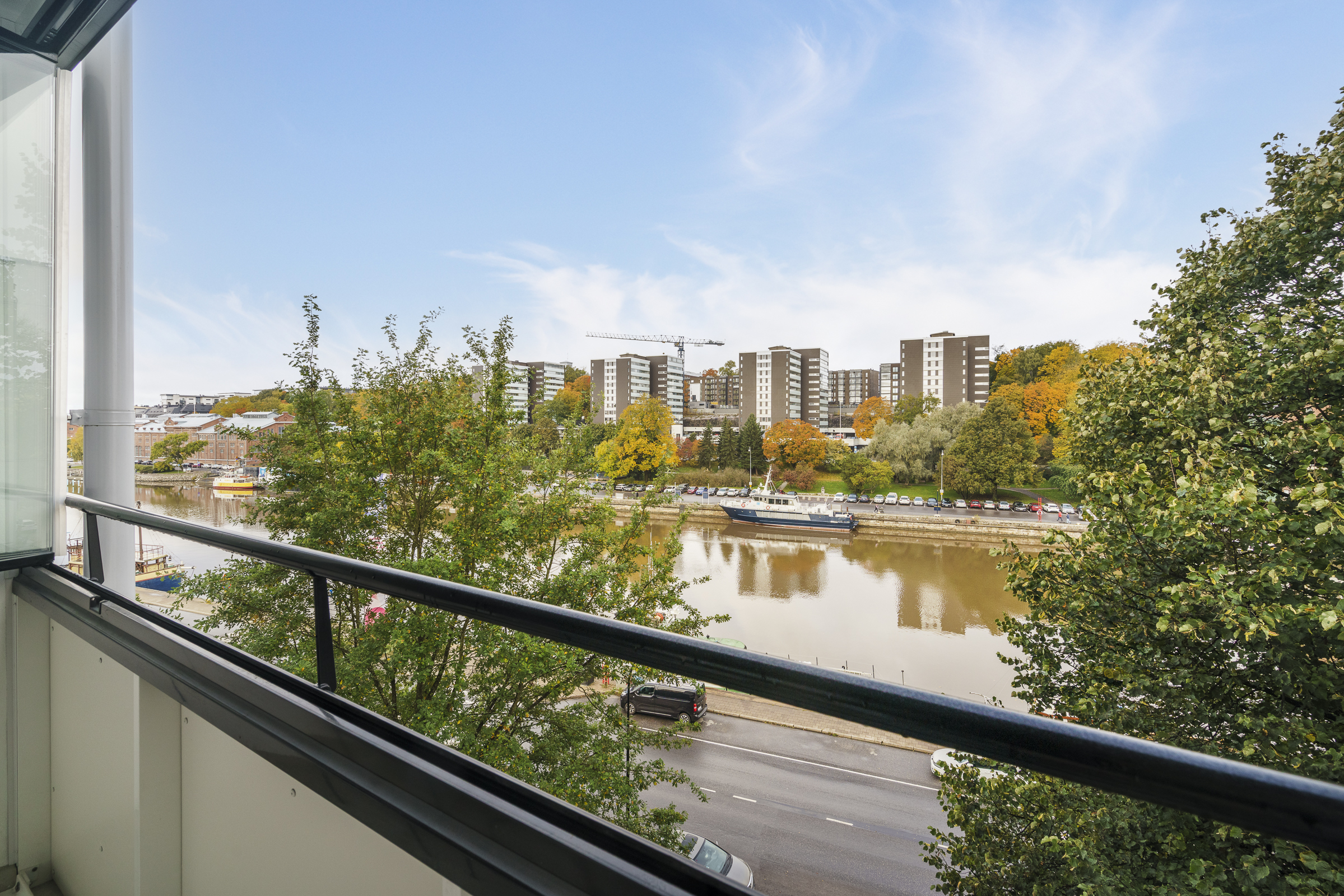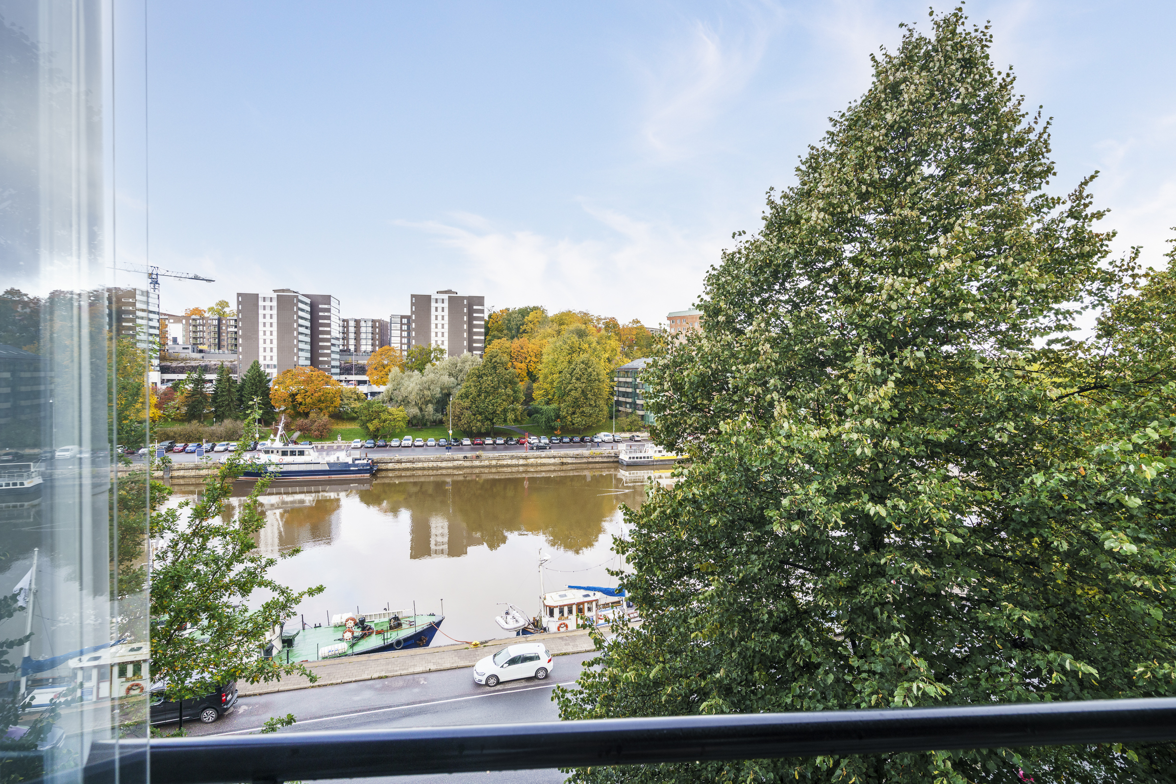 Hieno jokinäkymä. Parveke on saneerattu julkisivusaneerauksen yhteydessä.