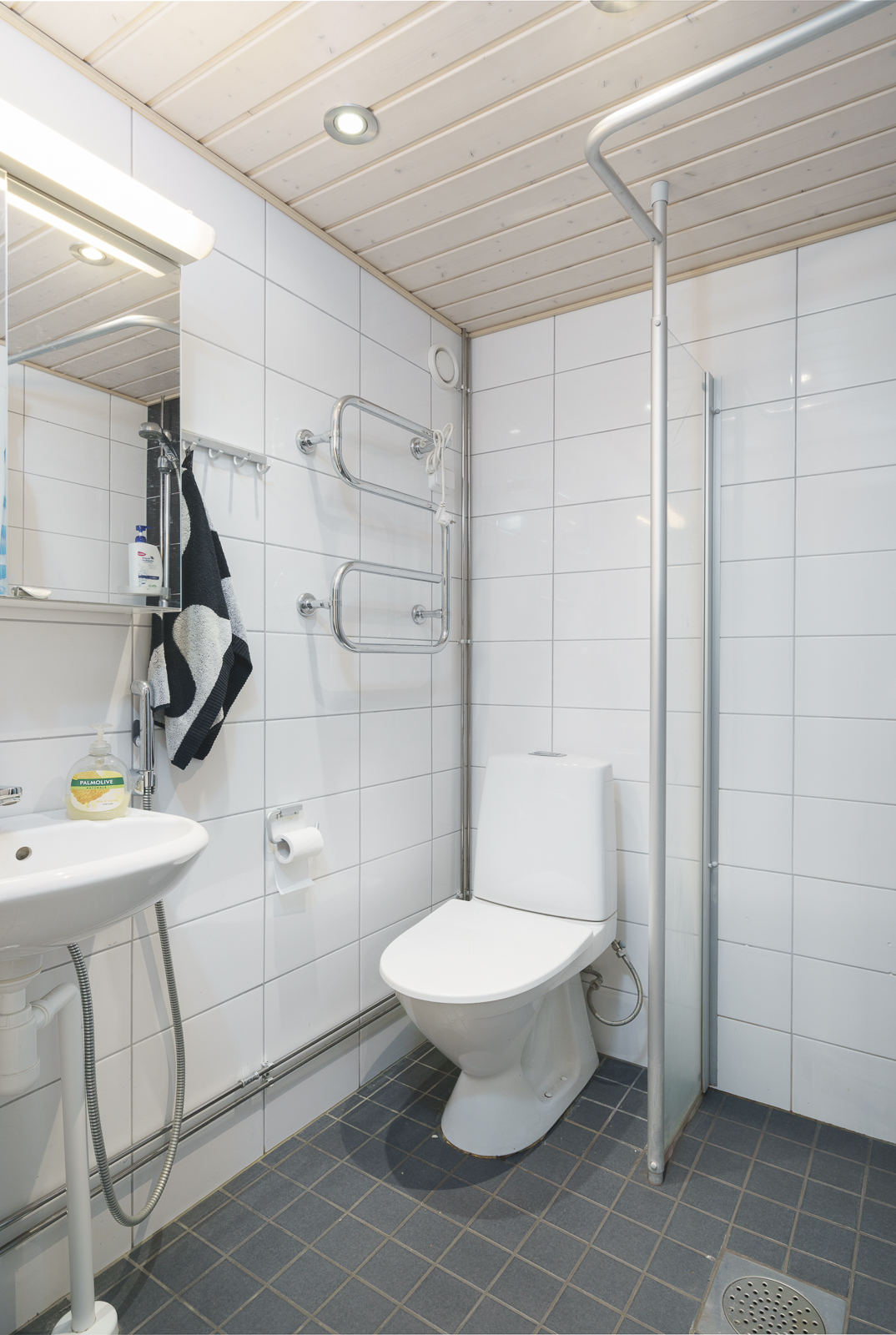 Saunan lattia ja koko asunnon sähköt on remontoitu linjasaneerauksen yhteydessä urakoitsijan toimesta.