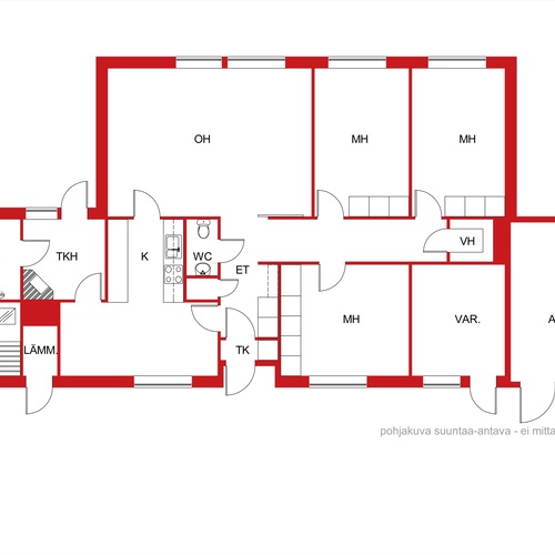 Talossa on muutama vuosi sitten tehty mittava sisäremontti. Remontin yhteydessä lattioihin on asennettu vesikiertoinen lattialämmitys.