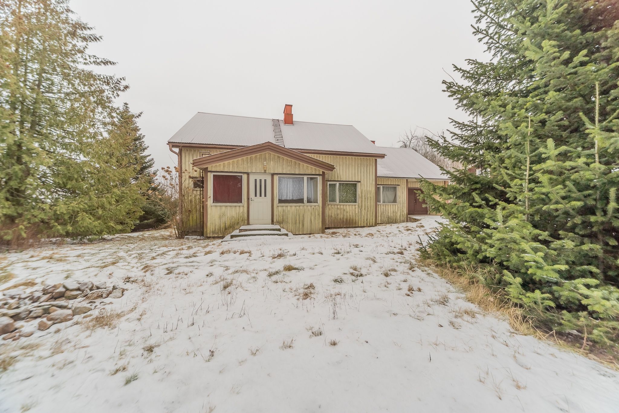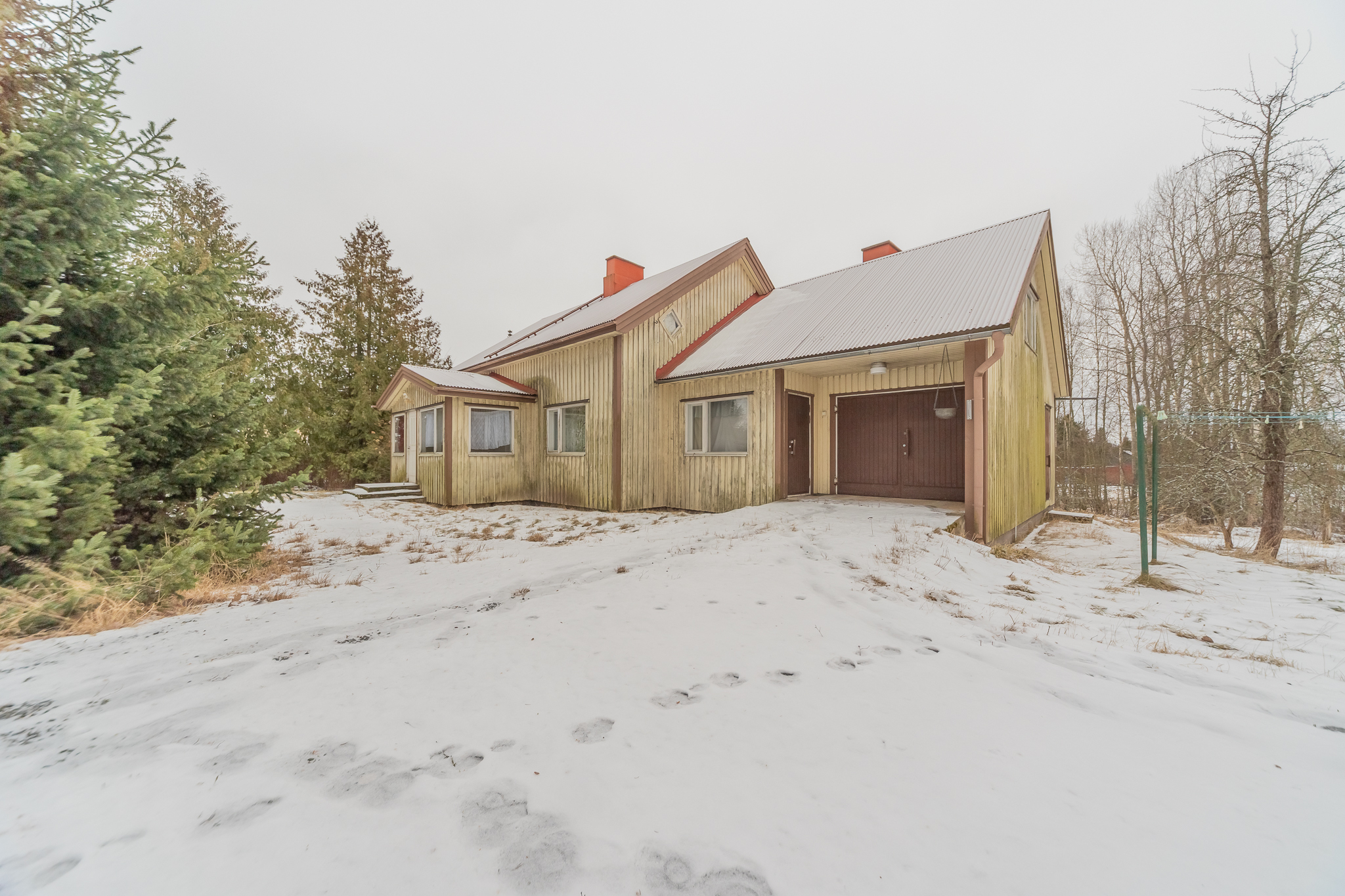 Kunnossa oleva julkisivu on saanut osumaa puustosta ja vaatii nyt pesua.