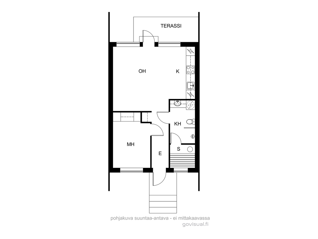 Varusteet: jääkaappipakastin, astianpesukone, erillisuuni, liesituuletin hormilla, keraaminen liesi