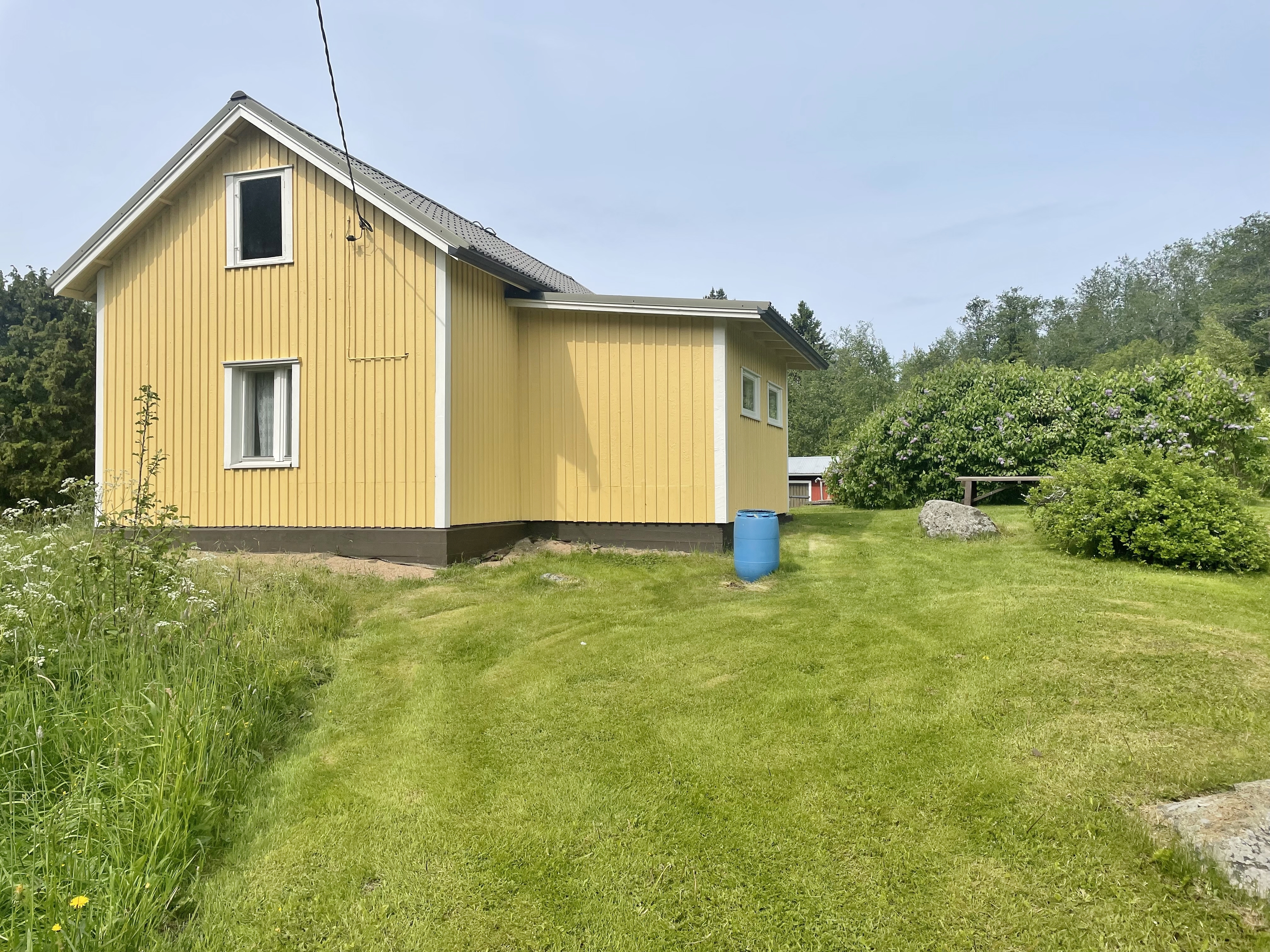 Tämä entinen merenrantapaikka on muuttunut viihtyisäksi kuivanmaan mökiksi. Reilun hehtaarin kokoinen oma tontti tarjoaa runsaasti nurmialuetta, jossa on tilaa puuhastella, pelata tai vaikka perustaa puutarha. Useat ulkorakennukset mahdollistavat riittävät säilytystilat.