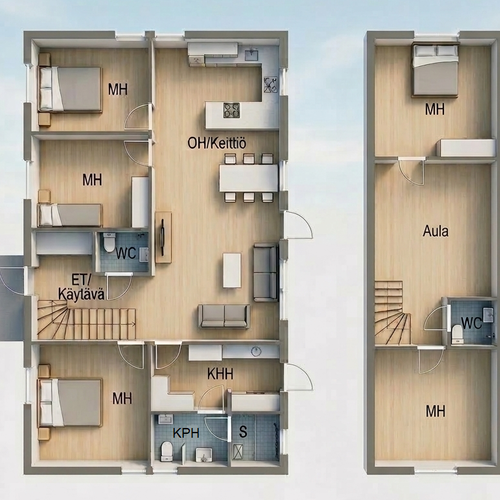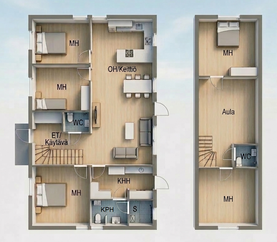 Tässä tilavassa ja modernissa kodissa on peräti viisi makuuhuonetta, joten tilaa riittää suuremmallekin perheelle tai voit rakennuttaa talon vain yläkertavarauksella jolloin hinta on 289.000 €. Alakerrassa vesikiertoinen lattialämmitys, joka tarjoaa tasaisen ja miellyttävän lämmön koko taloon. Energiatehokas rakenne takaa edulliset asumiskustannukset ja huolettoman arjen pitkälle tulevaisuuteen.