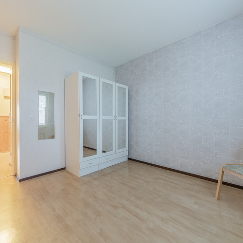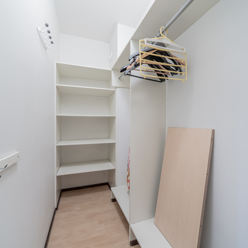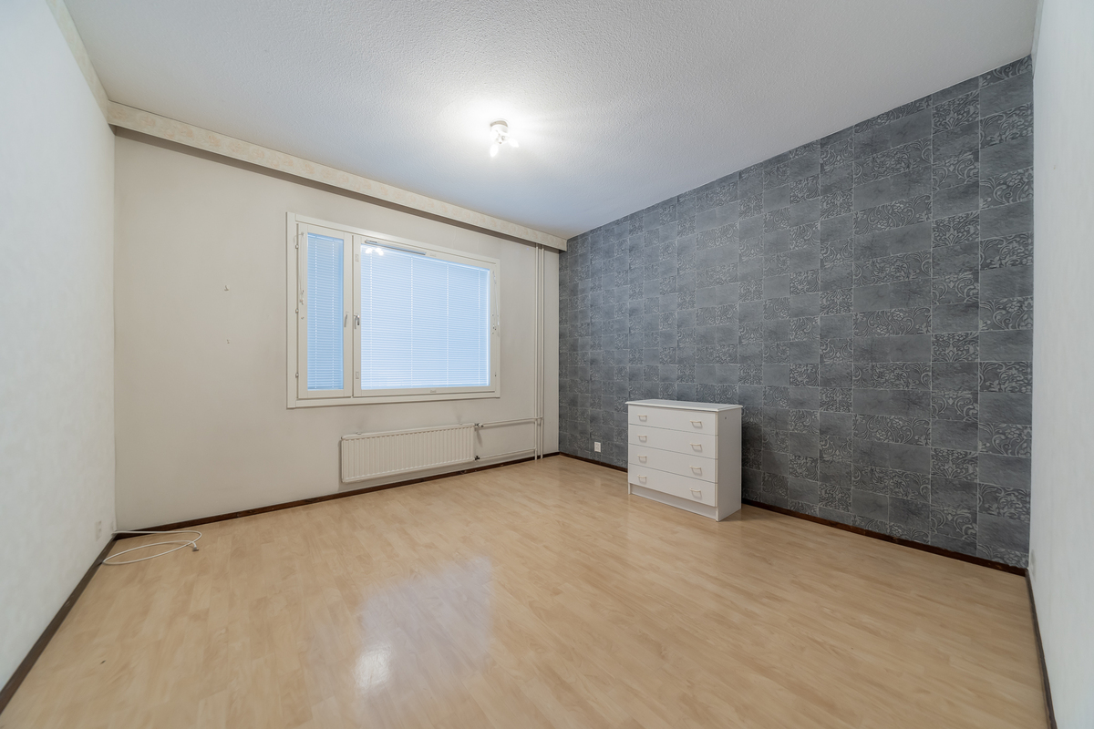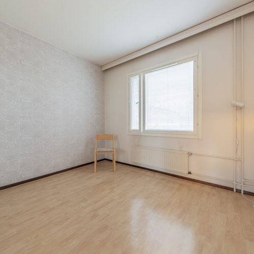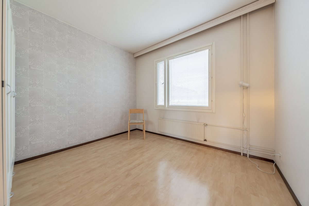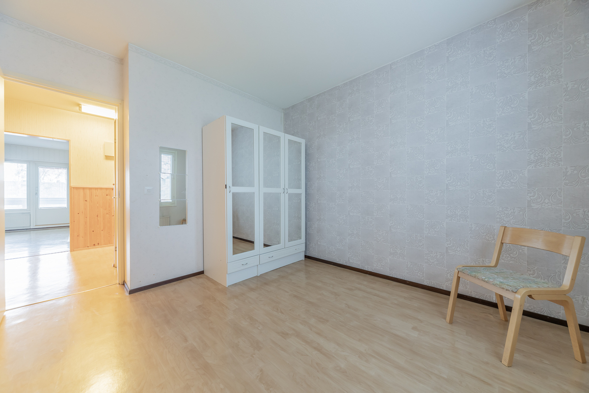 2 makuuhuonetta, toisessa kaapisto, vieressä vaatehuone, toisen makuuhuoneen yhteydessä vaatehuone, seinillä tapetti, lattioissa muovimatto