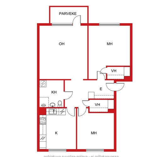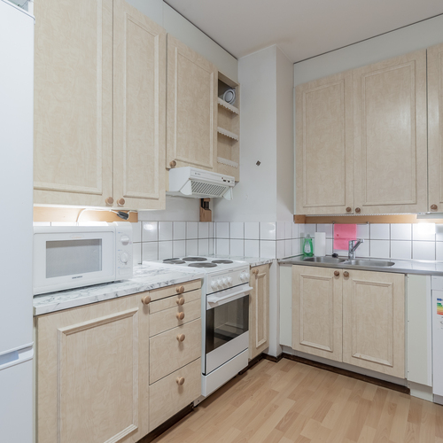 Jääkaappipakastin (2020), liesi, liesituuletin, astianpesukone (2022), seinillä tapetti/paneeli, laminaattilattia