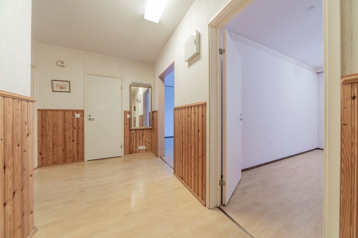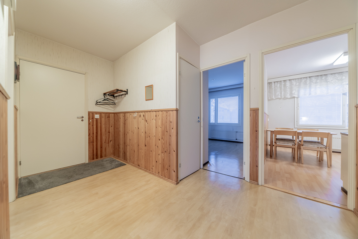 valoisa ja tilava läpitalon asunto kaipailee asukkaita. Asunnossa on 2 makuuhuonetta, toisen yhteydessä kaapisto, vieressä vaatehuone, toisen makuuhuoneen yhteydessä on vaatehuone, säilytystilaa varmasti riittävästi.