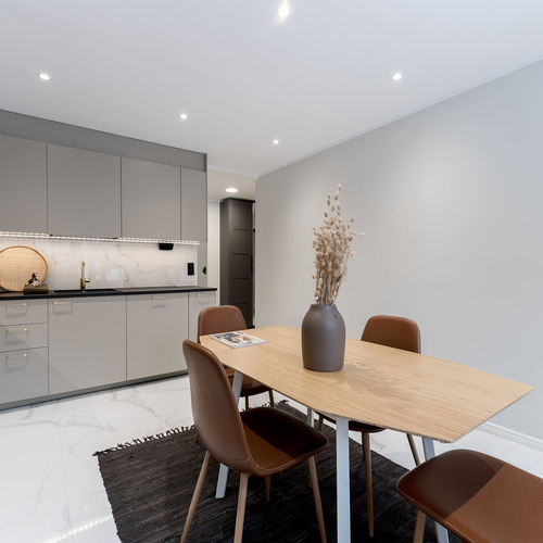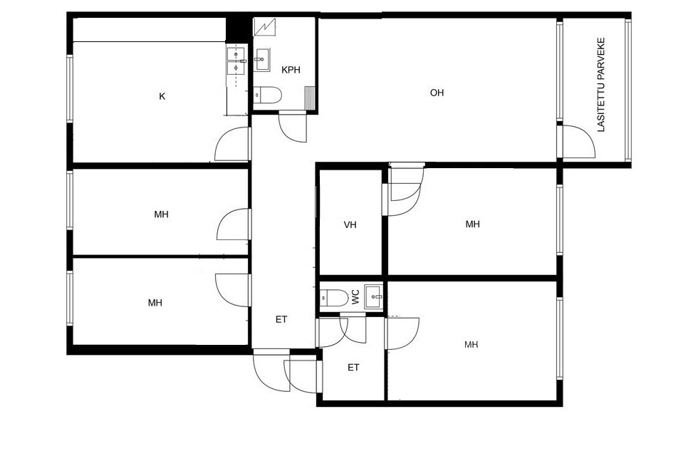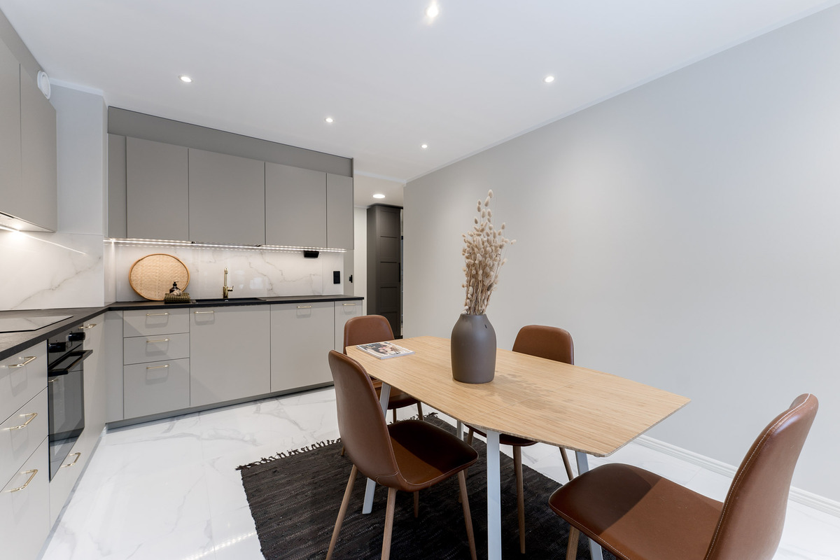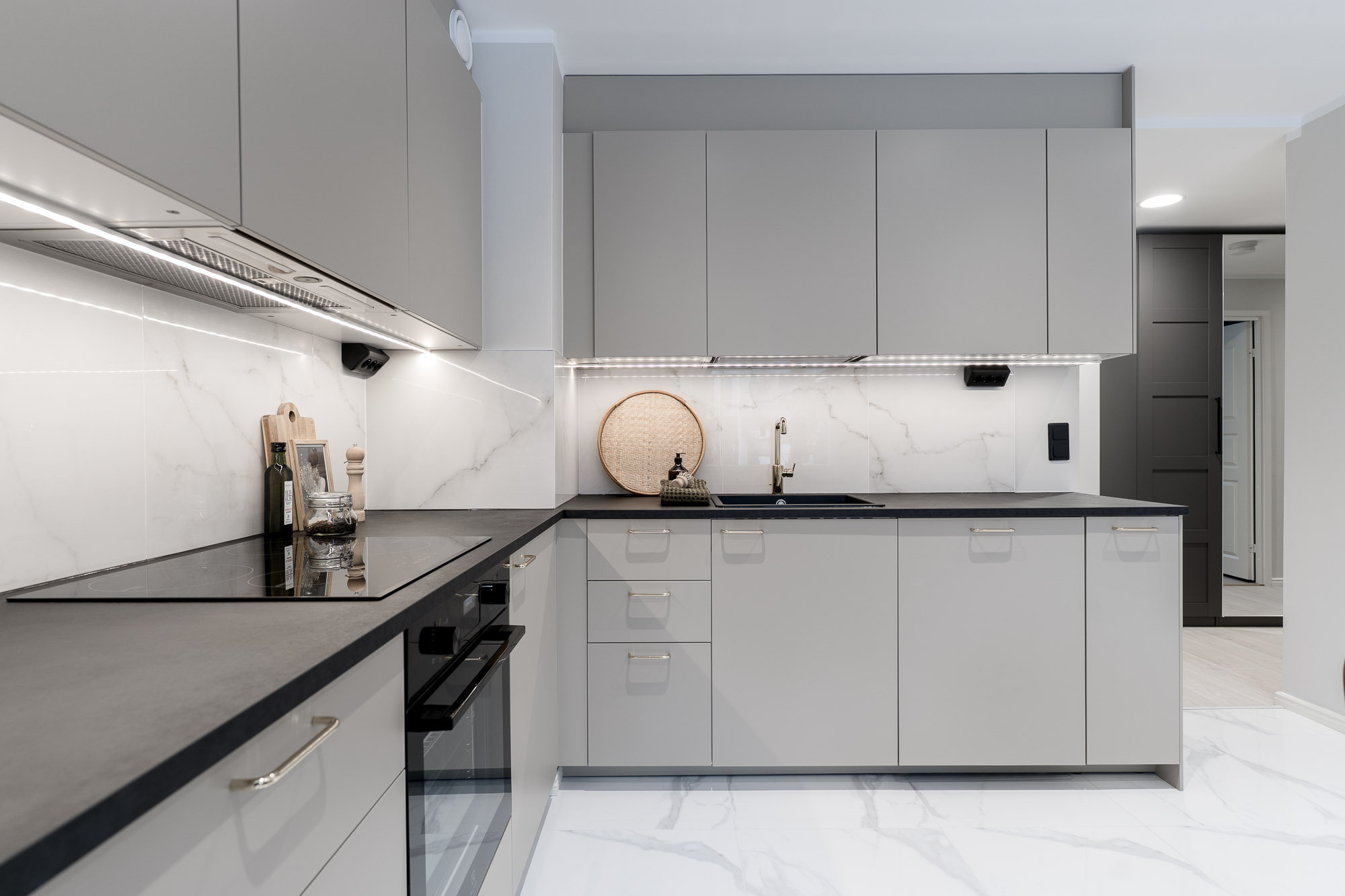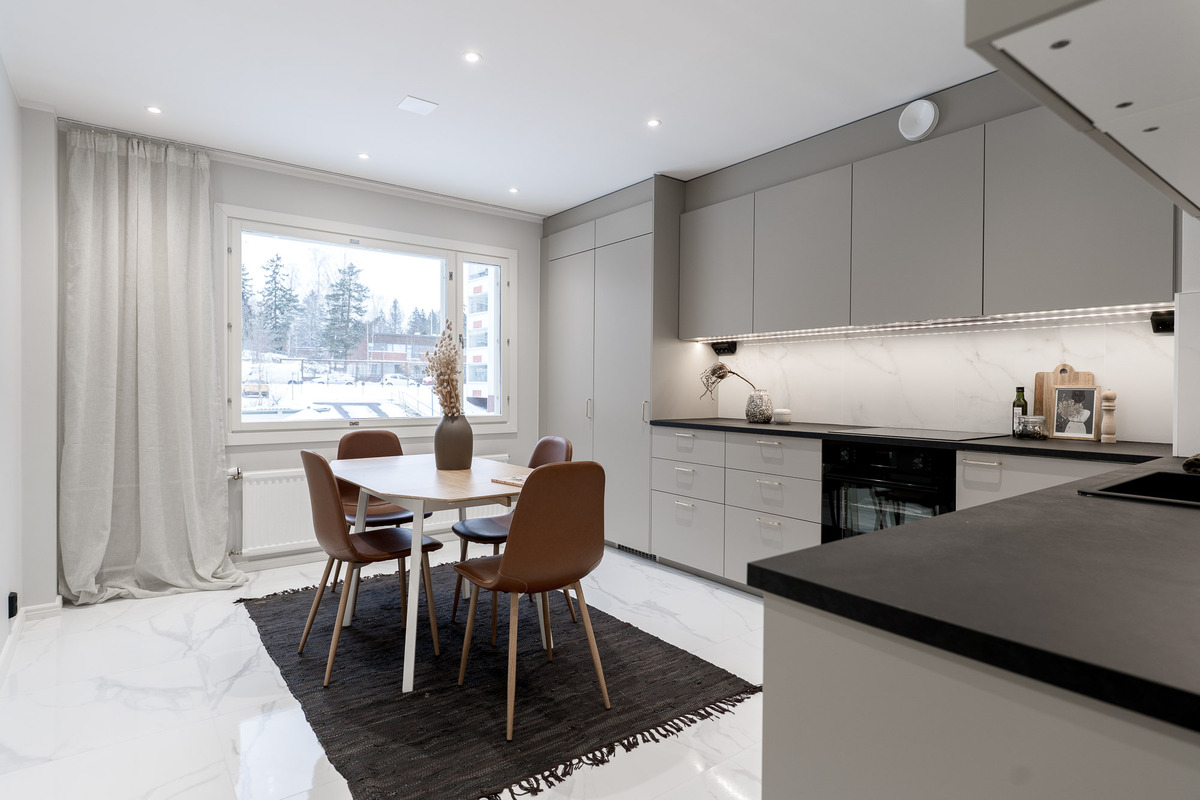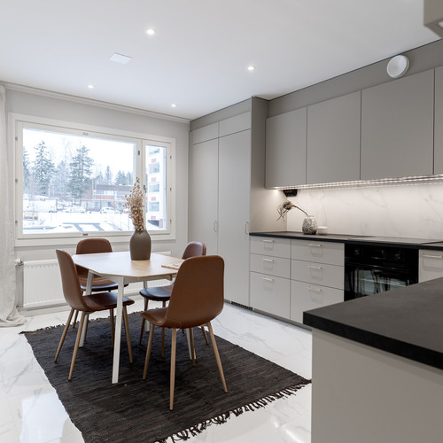 Varusteet: jääkaappipakastin, astianpesukone, integroidut kodinkoneet, induktioliesi, erillisuuni, liesituuletin