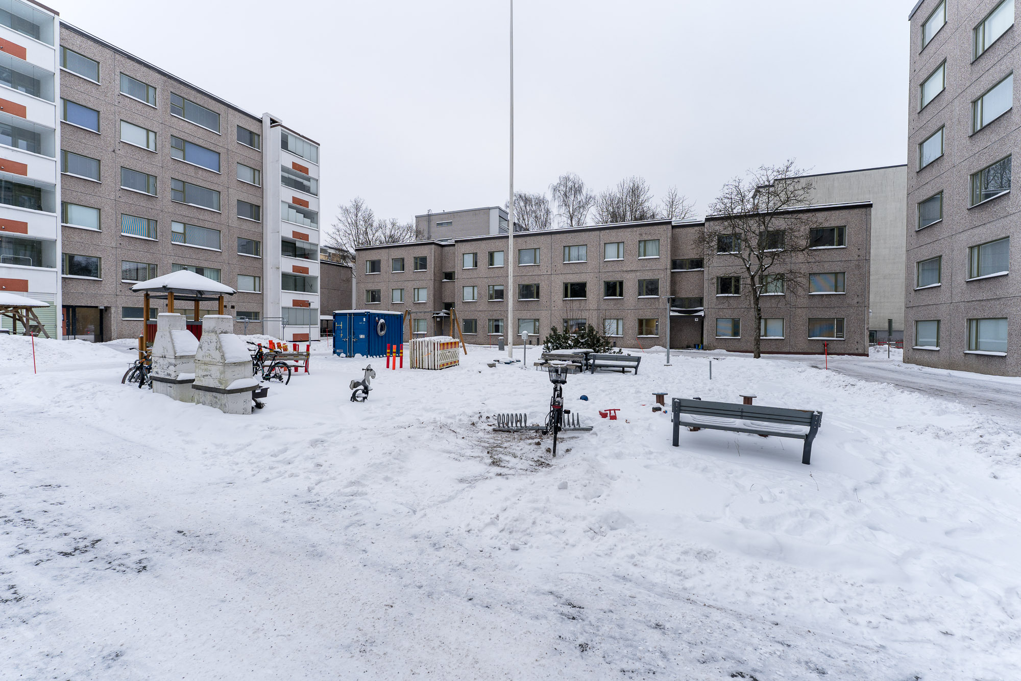 1991 Lämmönjakohuone 1995 Ikkunoiden kunnostus ja maalaustyöt 1996 Elementtisaumaukset 1997 Vesikattojen pinnoitus 1997-1998 Rappukäytävien maalaustyöt 2000 Ilmanvaihtokanavien puhdistus 2001 Roskakatokset rakennettu 2002 Hissikuilujen kattojen pinnoitus 2004 Rakennuksen 5 linjaventtiilien uusiminen 2005 Rakennuksen 4 linjaventtiilien uusiminen 2006 Rakennusten 1 ja 3 linjaventtiilien uusiminen 2008 Ikkunat ja parvekeovet uusittu 2009 Saunaosaston peruskorjaus, Lämmitysverkoston perussäätö ja patteriventtiilien uusiminen, Rakennusten eteläpäätyjen rappaus- ja saumakorjaukset, Ilmanvaihtokanavien puhdistus 2010 Parvekelinjojen kunnostus- ja maalaustyöt 2011 Lukituksen uusiminen 2012 Pihan kunnostustyöt, Rakennusten alustilojen kunnostus, Kattojen pellitysten maalaus ja käyntiluukkujen kunnostus, Uusittu linko pesutupaan 2013 Kiinteistön märkätilojen tarkastus ja dokumentointi, Parvekkeiden ja julkisivujen kuntotarkastus 2014 LVI-kuntotutkimus 2015 Kaukolämpölaitteiston uusiminen 2016 Julkisivujen elementtisaumojen ja ikkunasaumojen uusimistyö, parvekelinjojen vesikattojen uudelleenpinnoitus sekä rappukäytävien ala-aulojen laattojen uusimistyö 2018 Parvekkeiden sisäpuolien kunnostus- ja pinnoitustyöt ja parvekelasitukset 2019 Kylmäkellareiden purku, toisen kellarin kunnostus kylmiökäyttöön ja toisen kunnostaminen kuntosaliksi 2020 Ilmanvaihtokanavien puhdistus, huoneistojen märkätilojen tarkistus, saunatilojen kunnostaminen, taloyhtiön huoneiston kunnostaminen 2021 Huoneisto-ovien tiivistäminen, korjaus ja reunojen maalaus, Parvekeovien ja -ikkunoiden vikojen korjaus 2021-2022 Sähköautojen latausinfran esi-selvitys 2023 LVIS-saneerauksen hankesuunnittelu.