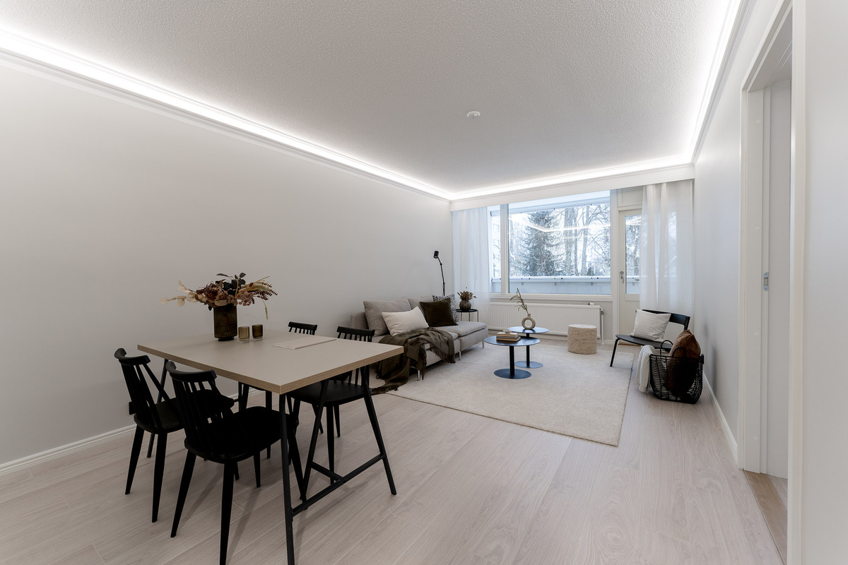 Tämä loistopohjainen perheasunto on juuri laadukkaasti remontoitu sekä pinnoiltaan, kiintokalusteiltaan että koneiltaan. Lisäksi märkätilat on uusittu nyt päättyvän putkiremontin yhteydessä.