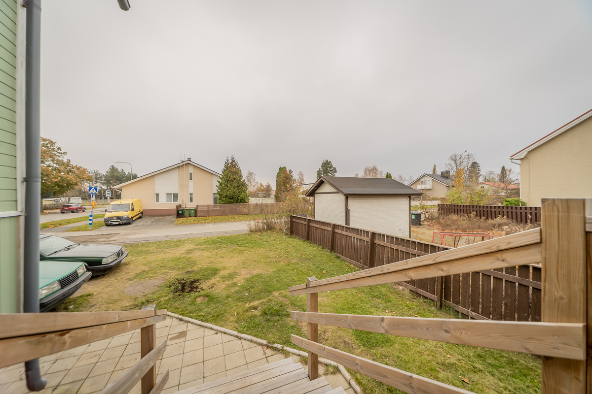 Alue on erinomainen; lähellä keskustaa, hyvät ulkoilumahdollisuudet, koulut, päiväkodit ja kaupat on lähellä eikä autollakaan hurauta kuin pari minuuttia valtatielle, mikä tekee työmatkoista vaivatonta 🙂