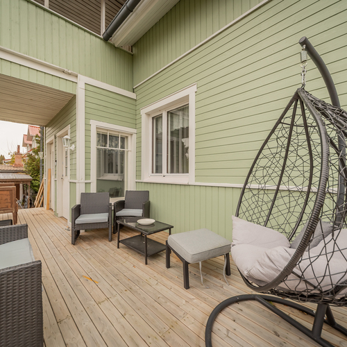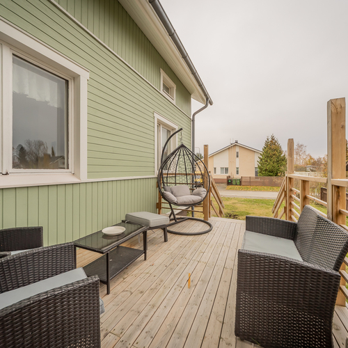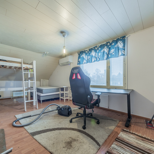 Talon tilat jakautuvat viiteen makuuhuoneeseen, keittiöön, kylpyhuoneeseen, kahteen vessaan, varastoihin ja parvekkeeseen. Puulämmitteinen pihasauna tarjoaa rentouttavat löylyt oman kodin rauhassa.