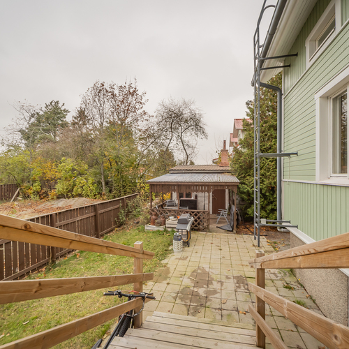 499 m²:n oma tontti, jonka piharakennuksessa on sauna sekä runsaasti varastotilaa.