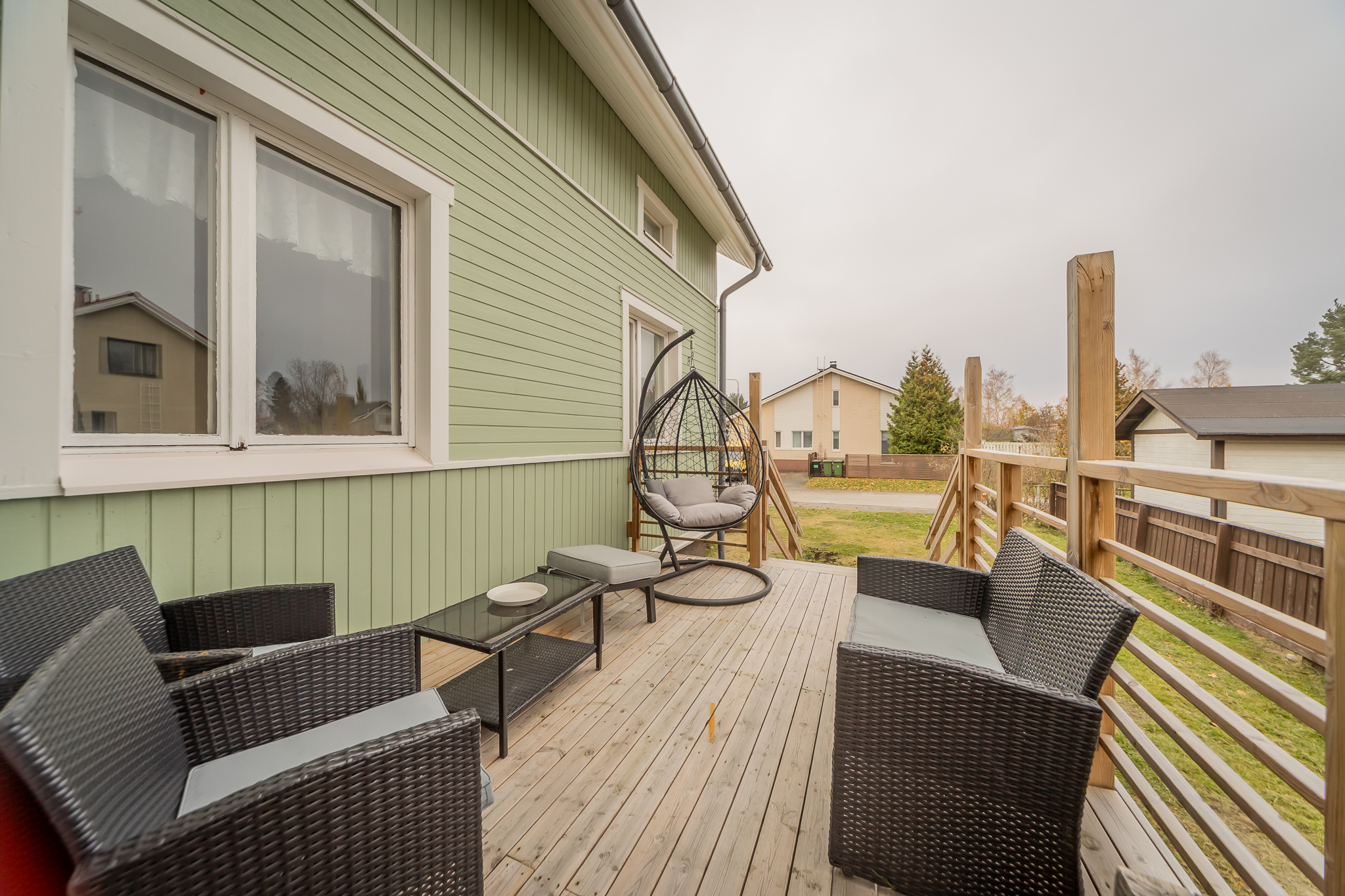 Alue on erinomainen; lähellä keskustaa, hyvät ulkoilumahdollisuudet, koulut, päiväkodit ja kaupat on lähellä eikä autollakaan hurauta kuin pari minuuttia valtatielle, mikä tekee työmatkoista vaivatonta 🙂