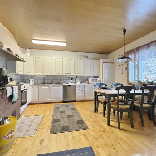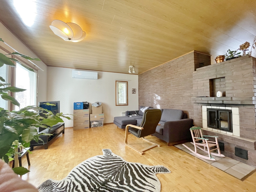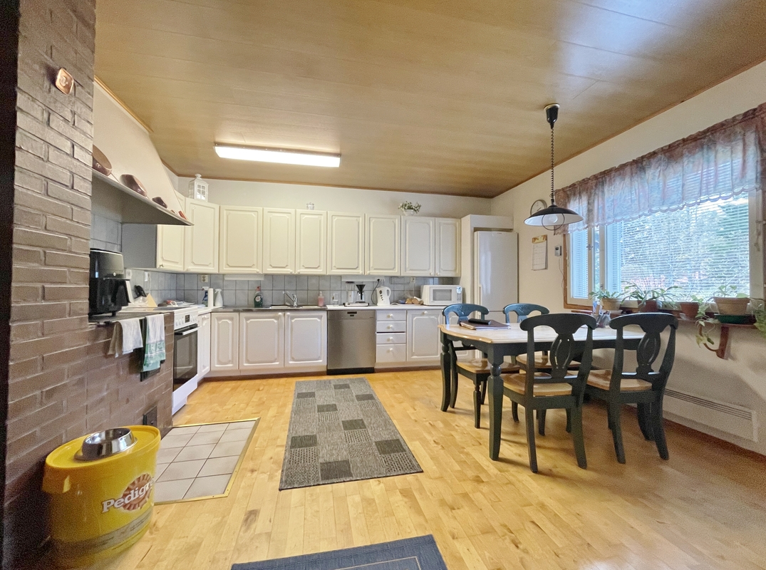 Tässä kodissa on varaava takka, ilmalämpöpumppu ja puuhella, jotka tuovat lämpöä, tunnelmaa ja energiatehokkuutta arkeen. Kolme makuuhuonetta tarjoavat hyvin tilaa perheelle, ja erillinen autotalli/varasto lisää säilytystilaa ja käytännöllisyyttä.